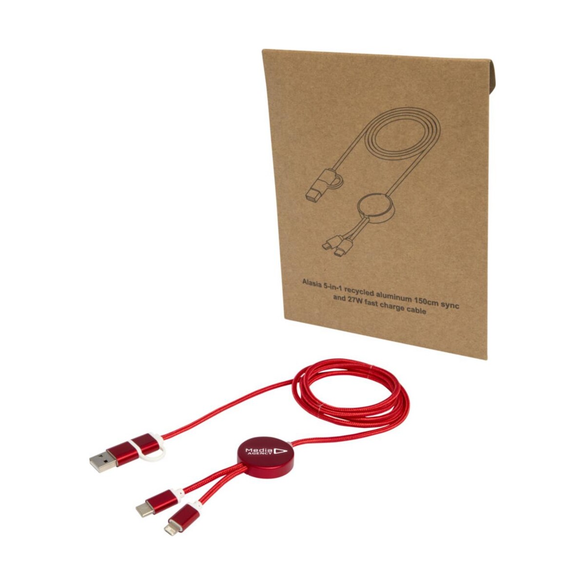 Alasia kabel do synchronizacji danych i szybkiego ładowania 5 w 1 27 W o długości 150 cm z tworzyw sztucznych i aluminium pochodzących z recyklingu