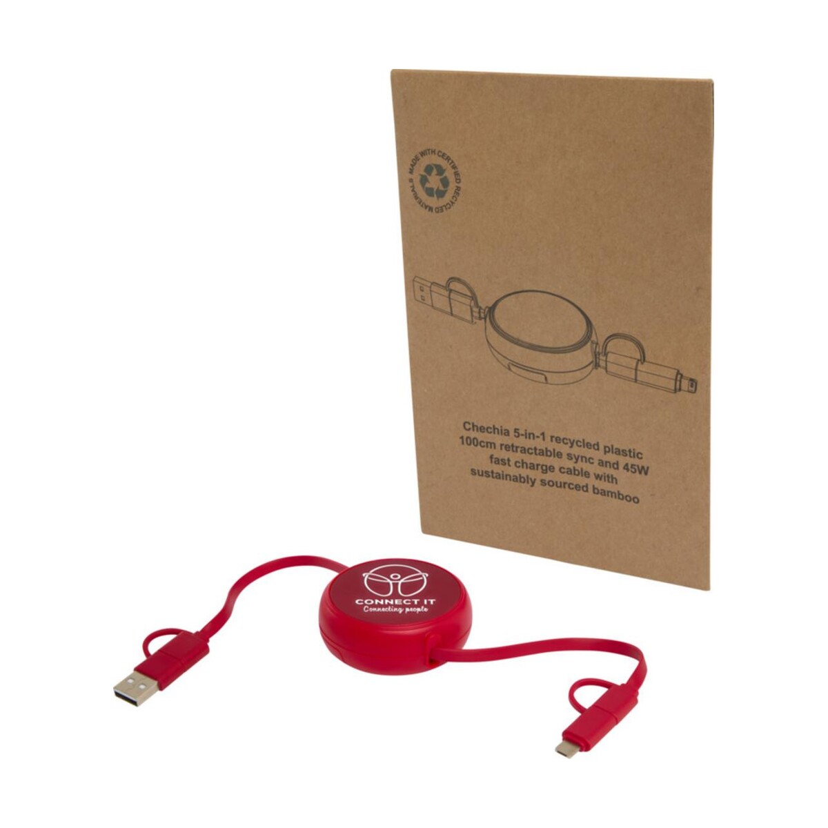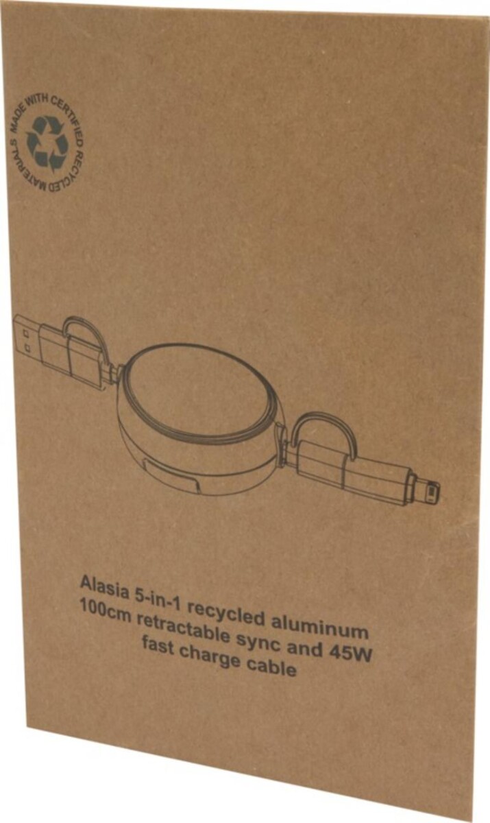 Alasia zwijany kabel do synchronizacji danych i szybkiego ładowania 5 w 1 45 W o długości 100 cm z tworzyw sztucznych i aluminium pochodzących z recyklingu
