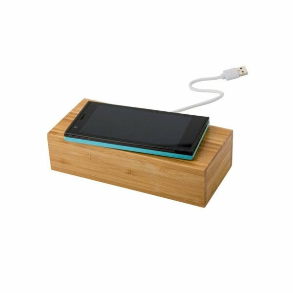 Bambusowa ładowarka bezprzewodowa 5W, zegar