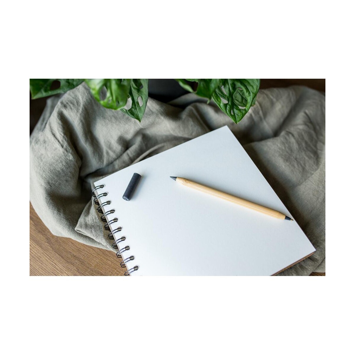 Wytrzymały bambus, biodegradowalny papier oraz minimalny udział plastiku tworzą z niego przyjazny środowisku gadżet reklamowy. Zamówienie większej partii dla Twojej firmy pozwoli ograniczyć ślad węglowy i jednocześnie wyróżni Cię spośród konkurencji 🌱. Wybierz ten praktyczny, długowieczny i estetyczny artykuł piśmienniczy, a każde zapisane słowo stanie się echem Twojego zaangażowania w ochronę planety.