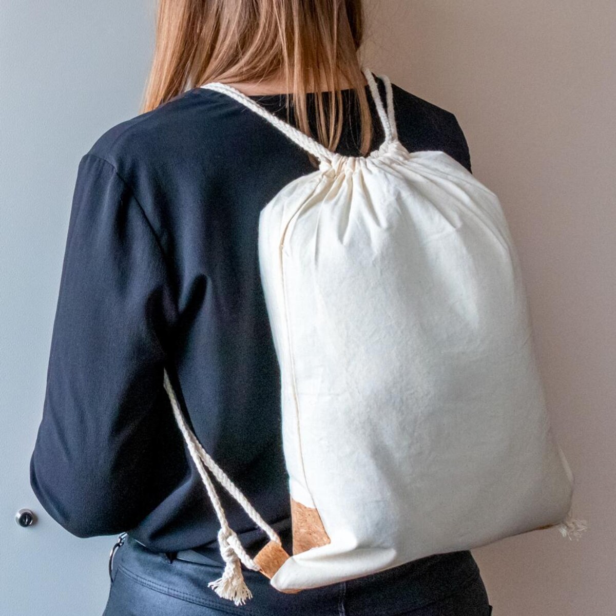 Bawełniany worek ze sznurkiem z korkowym elementem | Rontay