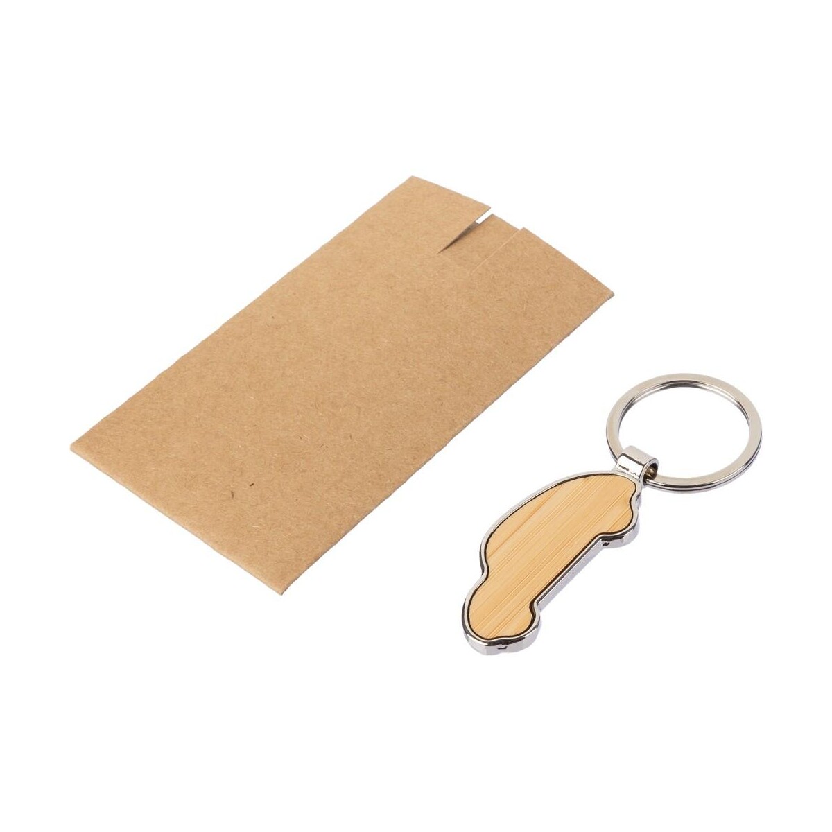 Brelok do kluczy „samochód” to ekologiczny, a zarazem niezwykle praktyczny gadżet, który wyróżni się w każdej kampanii reklamowej 🌱. Wykonany z przyjaznego środowisku bambusa i trwałych metalowych elementów, zachwyca naturalnym brązowym kolorem, podkreślając troskę o planetę dla Twojej firmy. Zamknięty w eleganckim kartoniku kraftowym, staje się gotowym upominkiem – wystarczy tylko dodać logo lub subtelny nadruk, aby w pełni spersonalizować przekaz. Dzięki kompaktowym wymiarom 5 x 2,4 x 0,4 cm i wadze zaledwie 19 g nie obciąża kieszeni ani torby, a jednocześnie jest na tyle solidny, by służyć przez lata.