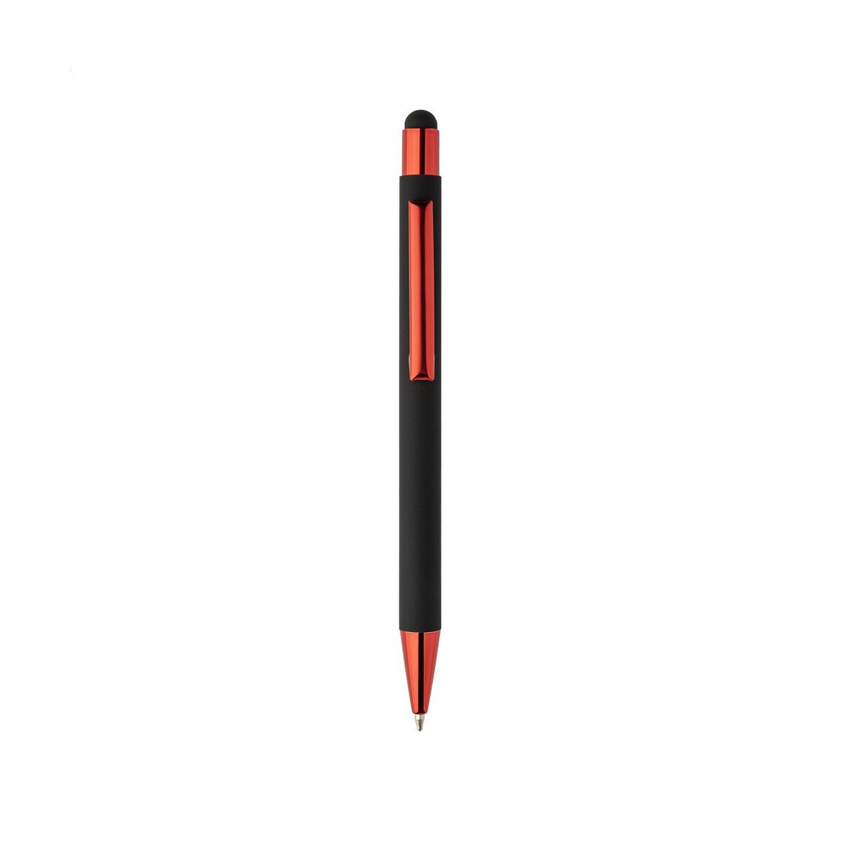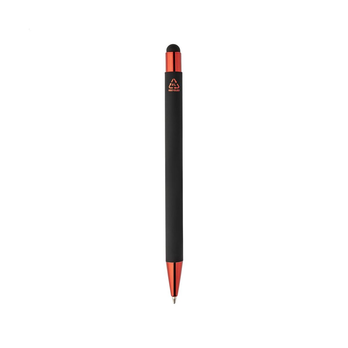 Darkly Tap długopis dotykowy to perfekcyjny kompan nowoczesnego biznesu, łączący elegancję metalu z troską o środowisko 🌱. Korpus wykonany z Aluminium z recyklingu o wymiarach ø10×142 mm i masie zaledwie 15 g gwarantuje lekkość, a matowa, czarna, gumowana powłoka zapewnia pewny chwyt. Kolorowe, błyszczące akcenty – od złotego po intensywny niebieski – nadają mu luksusowy charakter, który dodatkowo podkreśla specjalna warstwa przeznaczona do grawerowania lustrzanego. Dzięki niej Twoje logo lub nadruk olśni kontrastem, tworząc wyjątkowy efekt.