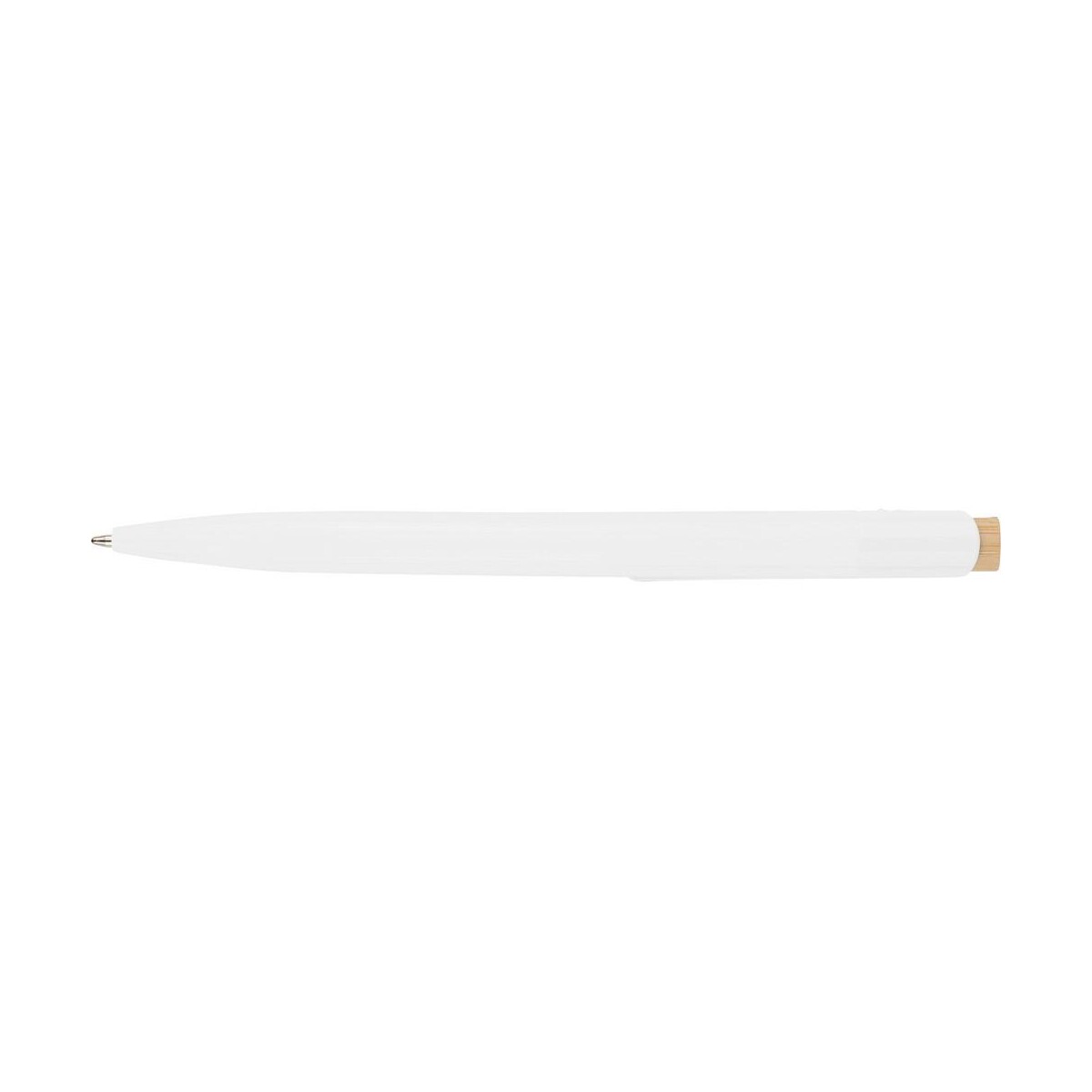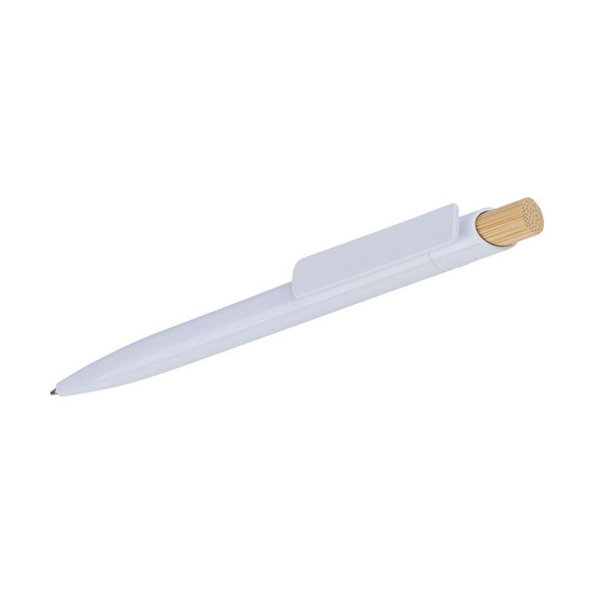 Długopis to znakomity wybór, gdy szukasz praktycznego i stylowego upominku dla Twojej firmy. Wykonany z połączenia bambusa, aluminium i ABS z recyklingu, ten ekologiczny gadżet przyciąga uwagę minimalistycznym designem oraz subtelną ikoną recyklingu umieszczoną na korpusie. Lekki – waży zaledwie 6,42 g – i poręczny (ø1 × 14,4 cm), mieści niebieski wkład wystarczający aż na ok. 600 m płynnego pisania. Metalowy klips zapewnia pewne mocowanie do notesu czy kieszeni, a bambusowy przycisk dodaje naturalnego uroku 🌿.