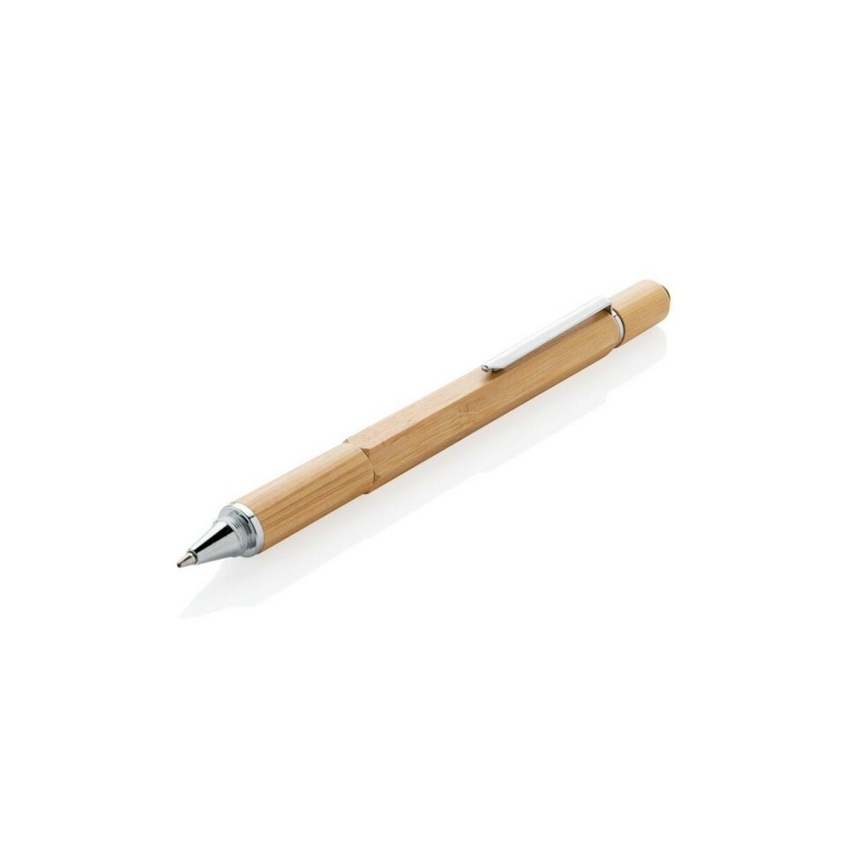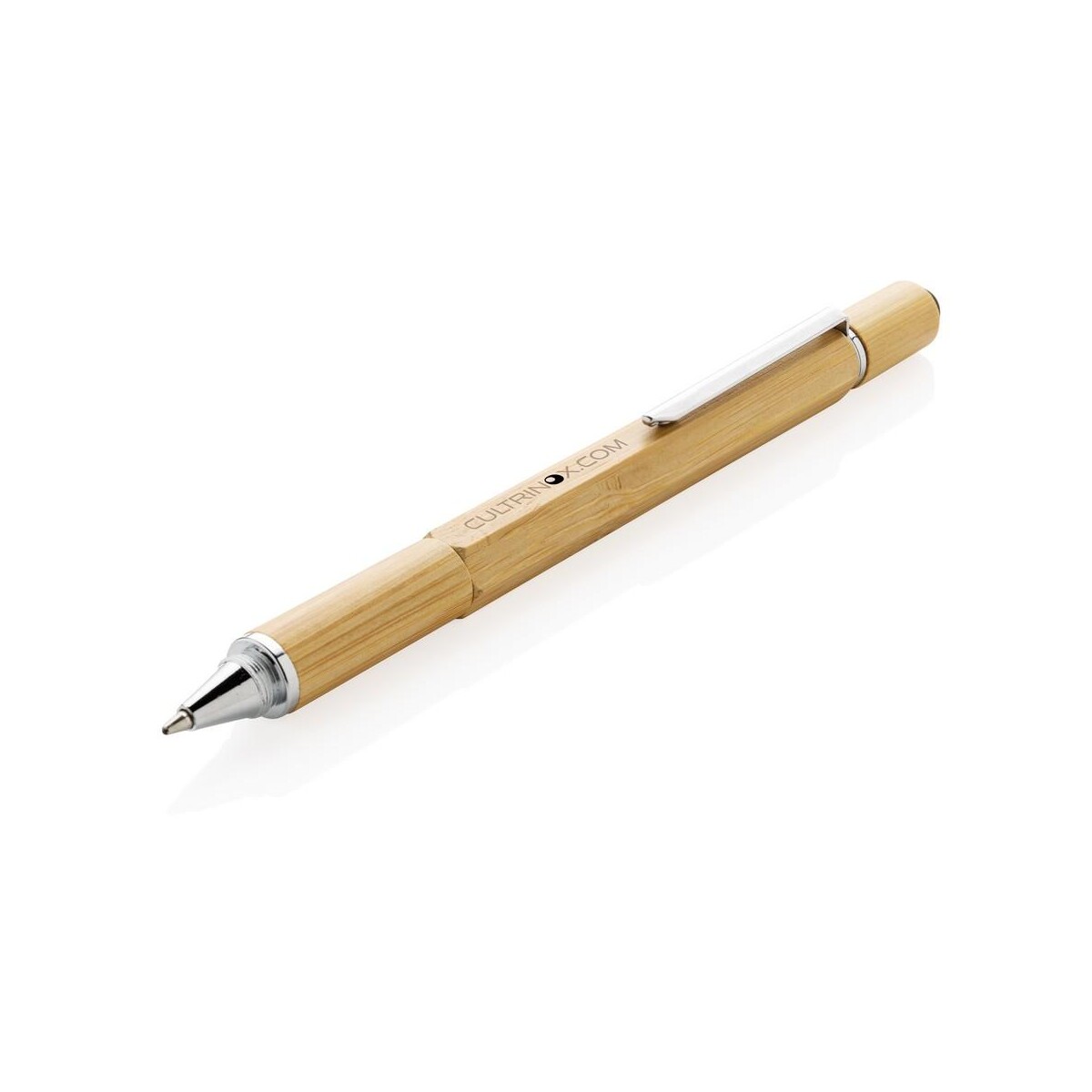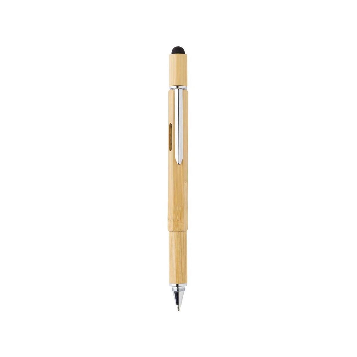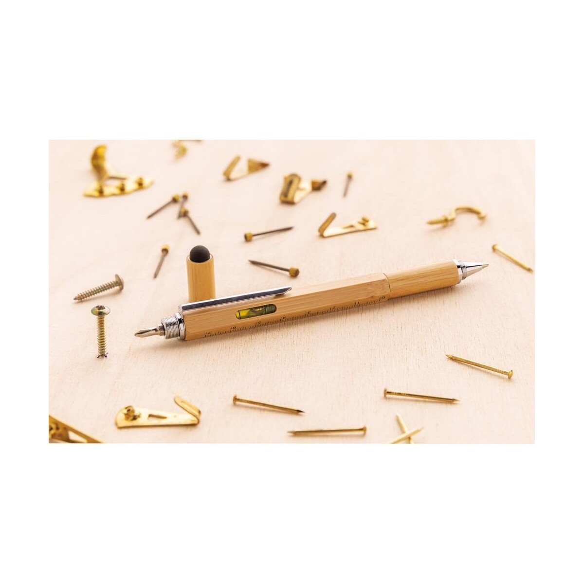 Długopis wielofunkcyjny to sprytny sprzymierzeniec każdego profesjonalisty, który lubi mieć pod ręką więcej niż jedno narzędzie ✏️. Wykonany z naturalnego bambusa, ten elegancki gadżet o wymiarach 1,3 × 15 cm zaskakuje funkcjonalnością i niskim śladem węglowym wynoszącym zaledwie 0,13 kg CO₂. Dzięki solidnemu aluminiowemu klipsowi możesz przypiąć go do kieszeni lub notesu, a brązowy odcień drewna harmonijnie współgra z każdym stylem, od casual po biznesowy.