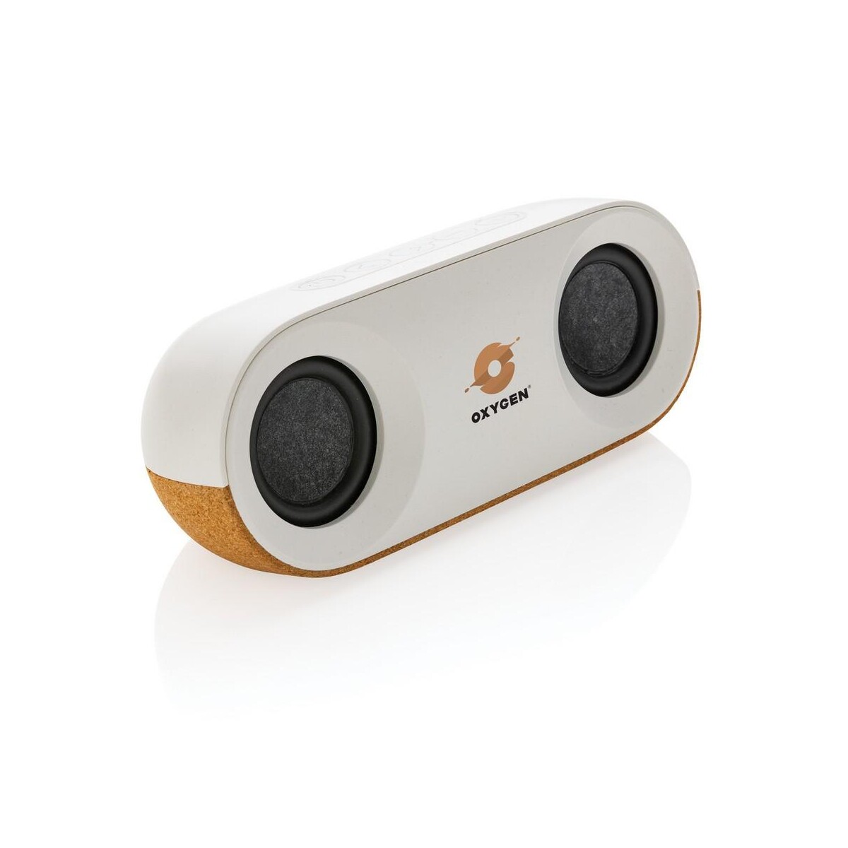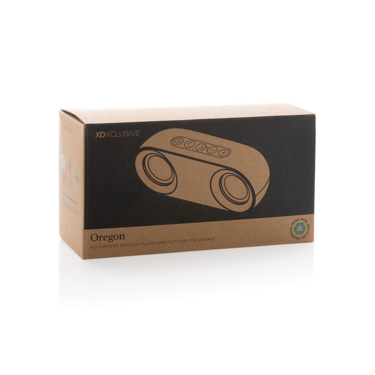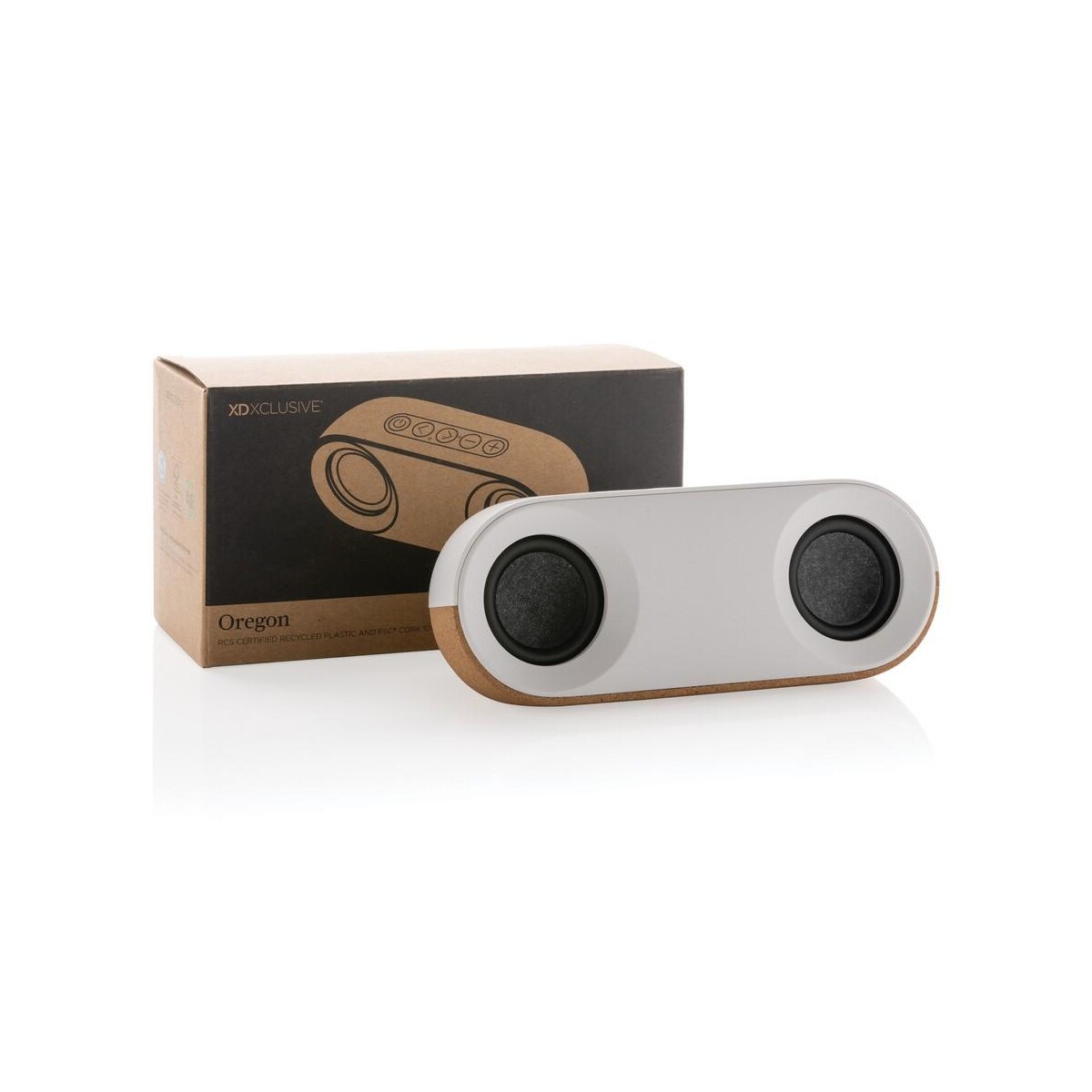 Głośnik bezprzewodowy 10W Oregon to ekologiczny gadżet, który łączy mocny dźwięk z troską o środowisko. Obudowa z korka z certyfikatem FSC® oraz rABS z recyklingu (25% całkowitej masy) nadaje mu naturalny, przyjemny wygląd, a jednocześnie potwierdza odpowiedzialne pochodzenie materiałów. Wewnątrz kryje się wzmacniacz 10 W i moduł BT5.3, dzięki czemu muzyka dociera czysto i głęboko nawet z odległości do 10 m. Wbudowany akumulator 1200 mAh pozwala na nieprzerwane odtwarzanie przez 10 godzin, a intuicyjny panel umożliwia odbieranie połączeń dzięki zintegrowanemu mikrofonowi. 🙂