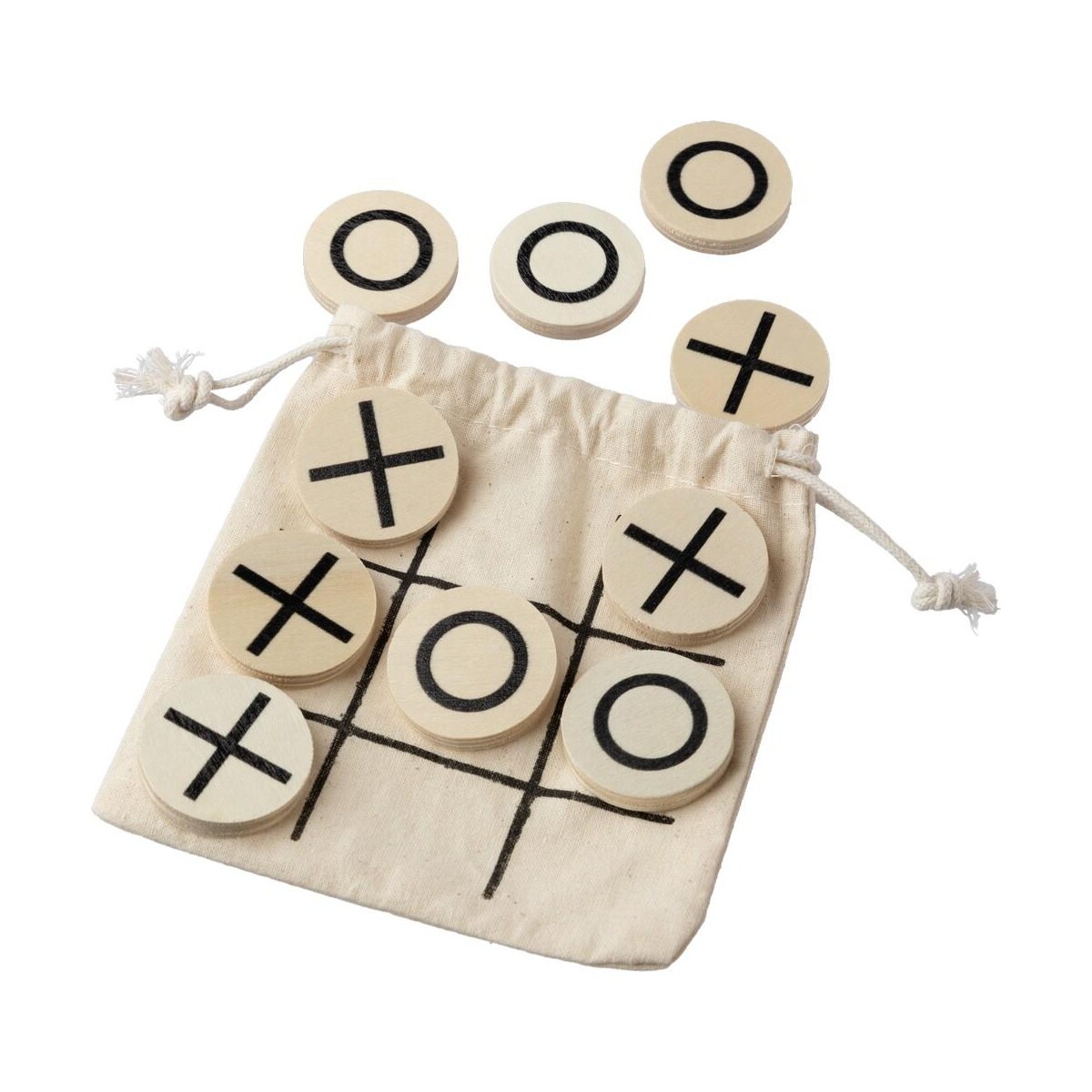 Gra „kółko i krzyżyk” to ekologiczny gadżet, który w prosty sposób potrafi przyciągnąć uwagę klientów i wzbudzić sentyment do klasycznych rozrywek. Zestaw zawiera 10 małych, drewnianych żetonów o wymiarach Ø3,3 x 0,6 cm, zapakowanych w praktyczny, naturalny bawełniany woreczek. Całość waży zaledwie 30 g, dzięki czemu produkt świetnie sprawdzi się w plecaku, torbie plażowej czy nawet kieszeni – zawsze pod ręką, aby umilić wolną chwilę 😊.