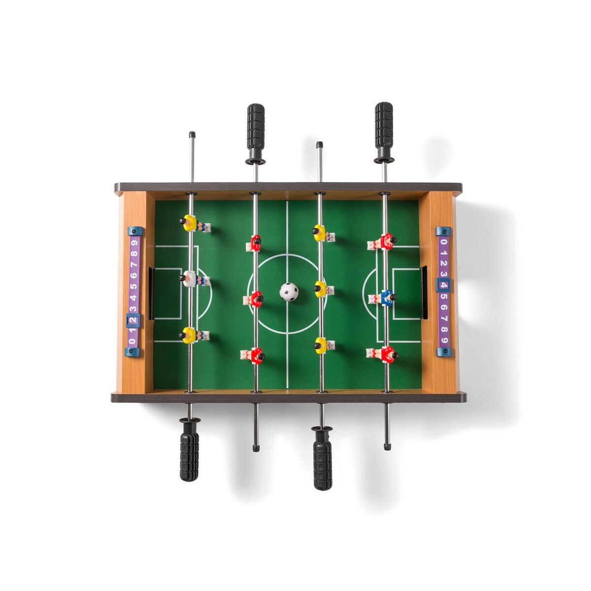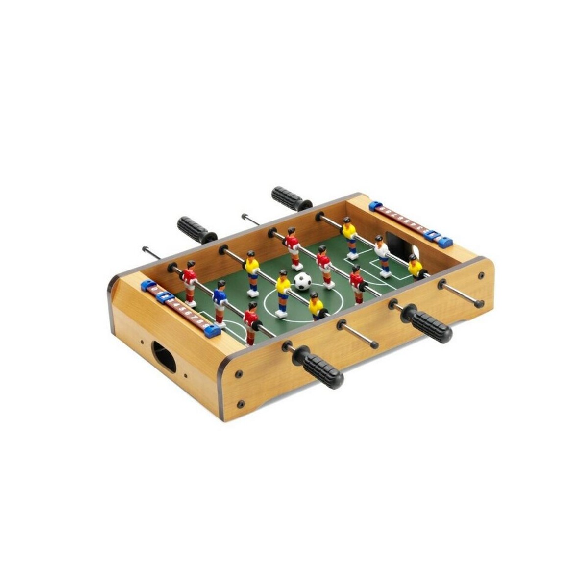 Gra mini-piłkarzyki to kompaktowe boisko, które wprowadzi sportowe emocje wszędzie tam, gdzie tylko zechcesz ⚽️. Dzięki sześciu zawodnikom po każdej stronie oraz dołączonej piłce poczujesz atmosferę prawdziwego meczu bez wychodzenia z biura czy domu. Ten wyjątkowy gadżet wykonano z połączenia plastiku, metalu i mdf, co gwarantuje trwałość oraz atrakcyjny wygląd w naturalnym, drewnianym kolorze. Zajmuje niewiele miejsca — jego wymiary 51 × 27,5 × 1 cm pozwalają wygodnie ulokować stół nawet na biurku, a waga 2558 g zapewnia stabilność podczas dynamicznych rozgrywek.