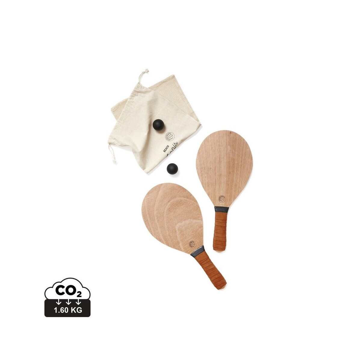 Gra zręcznościowa tenis VINGA Colos to ekologiczny zestaw stworzony z myślą o aktywnym wypoczynku na plaży, w ogrodzie czy podczas firmowych pikników. W komplecie znajdują się 2 drewniane rakiety oraz 2 wytrzymałe, gumowe piłki, a wszystko zapakowane w praktyczny pokrowiec, który ułatwia transport i przechowywanie 😊. Dzięki naturalnemu drewnu i minimalistycznemu designowi produkt wpisuje się w trend zero waste i stanowi gadżet premium, który przyciąga uwagę swoją jakością i trwałością.