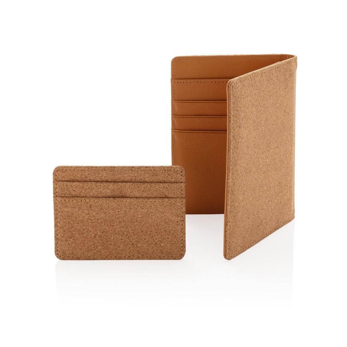 Korkowe etui na karty kredytowe i paszport, ochrona RFID to ekologiczny gadżet, który łączy nowoczesną funkcjonalność z naturalnym stylem. Wykonane w 100 % z przyjaznego środowisku korka w ciepłym, brązowym odcieniu, wyróżnia się lekką wagą oraz śladem węglowym wynoszącym zaledwie 0,24 kg CO₂. Dzięki kompaktowym wymiarom 14 × 0,8 × 10,5 cm bez trudu zmieści się w kieszeni marynarki, torebce czy plecaku, pozostawiając przy tym miejsce na inne drobiazgi. 😊