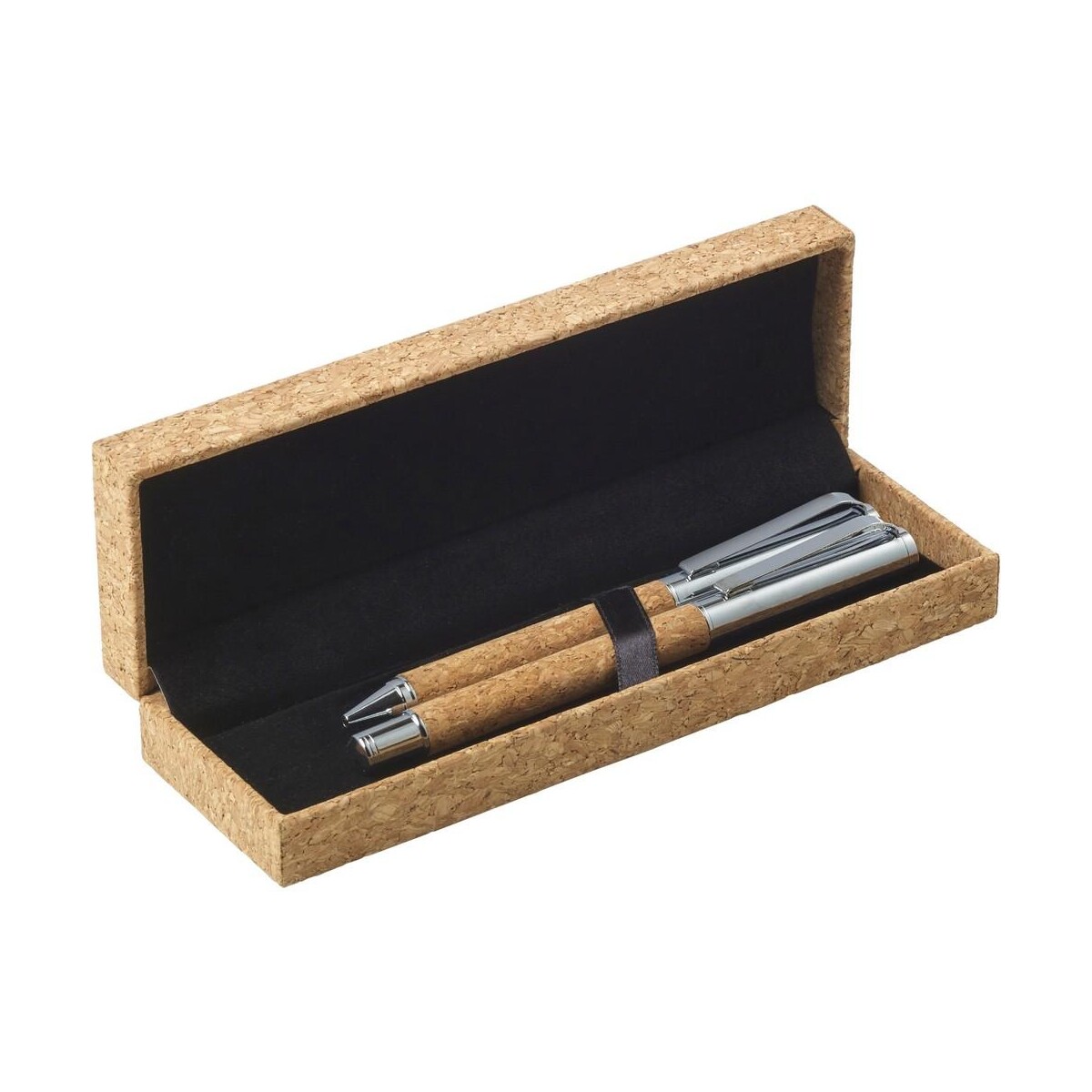 Korkowy zestaw piśmienniczy, długopis i pióro kulkowe