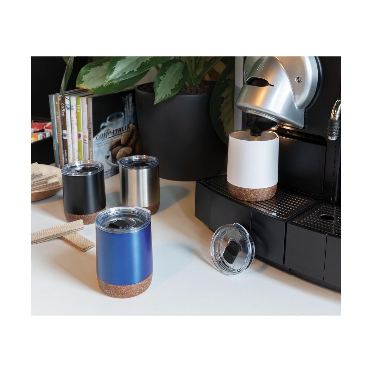 Eleganckie wersje kolorystyczne – czarna, srebrna, niebieska i biała – pozwalają dopasować kubek do identyfikacji wizualnej Twojego brandu. Duża, gładka powierzchnia doskonale nadaje się na trwały nadruk lub subtelne logo, dlatego produkt świetnie sprawdzi się jako upominek reklamowy podczas targów, konferencji czy kampanii CSR. W branżach takich jak IT, energetyka odnawialna, turystyka czy fitness kubek może stać się nie tylko praktycznym, lecz także mocno ekologicznym nośnikiem przekazu. Dzięki wysokiej klasie termicznej C i korkowej podstawie klienci zapamiętają Twoje reklamowe przesłanie na długo 🙂.