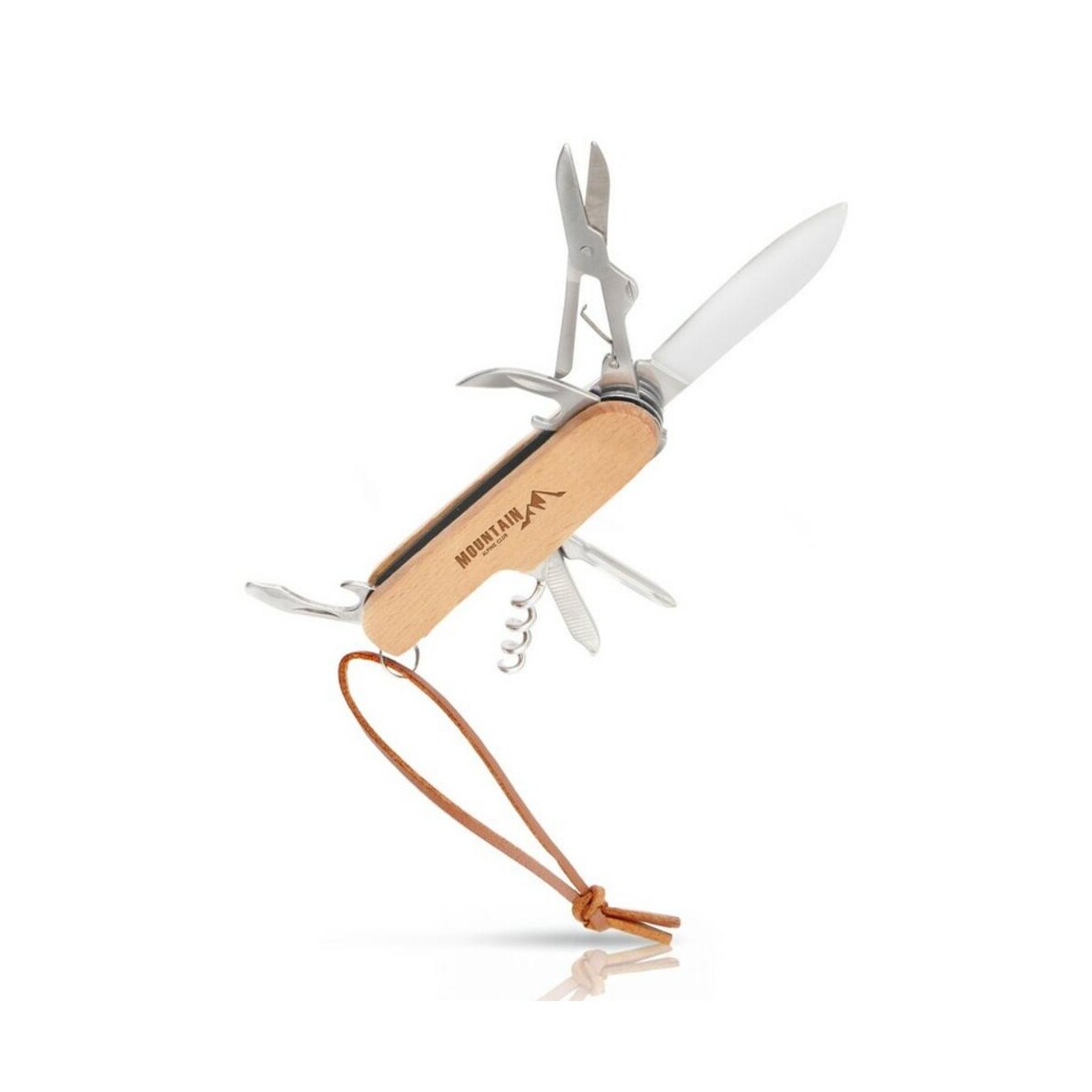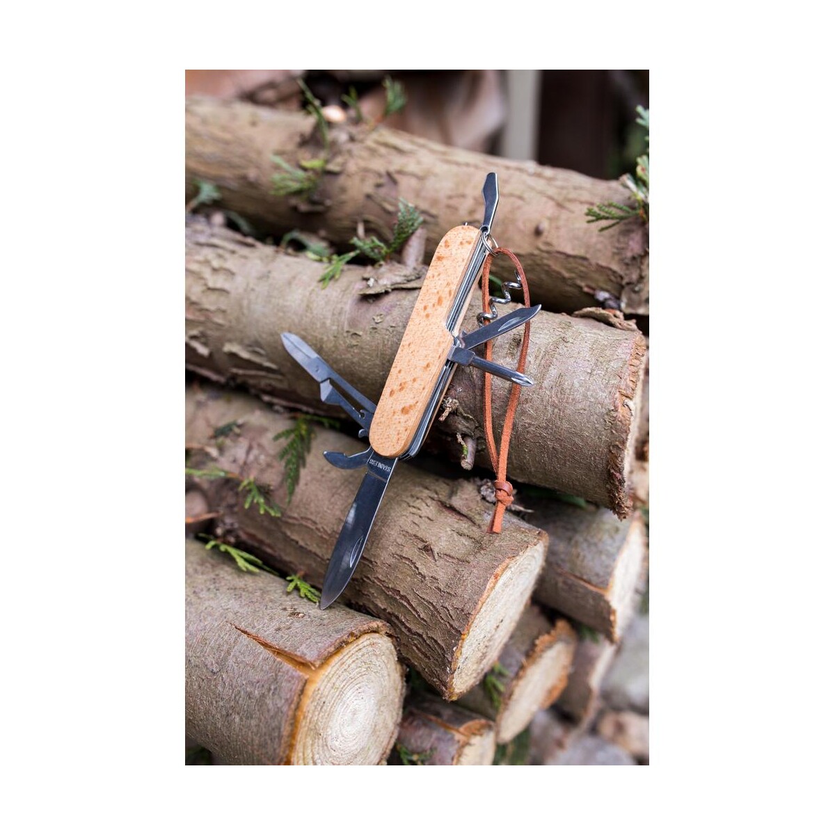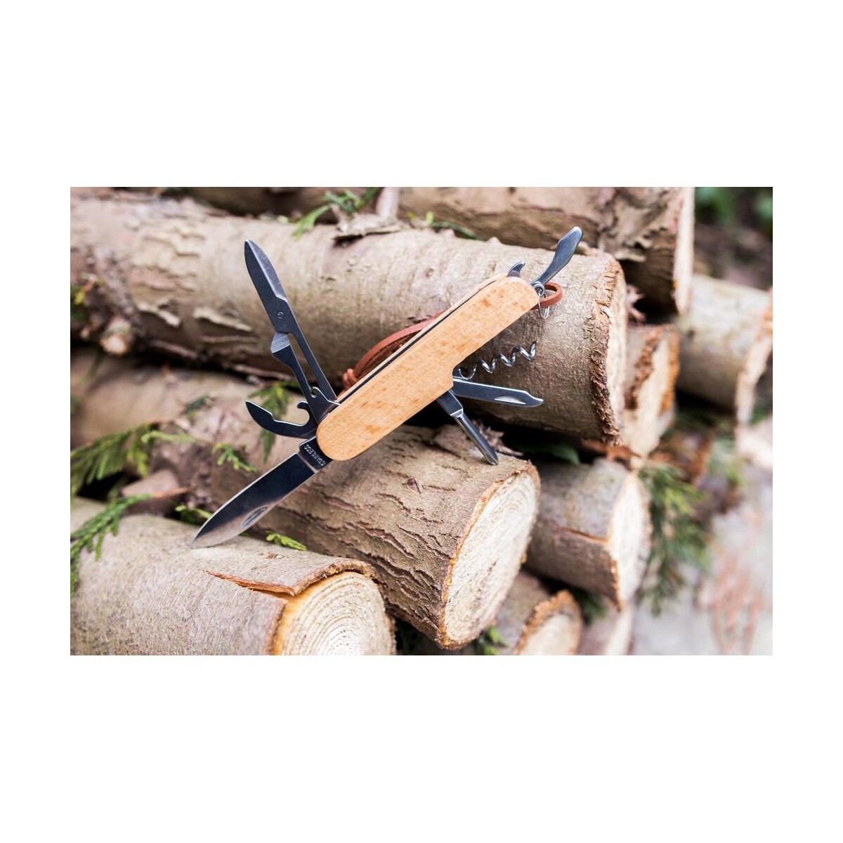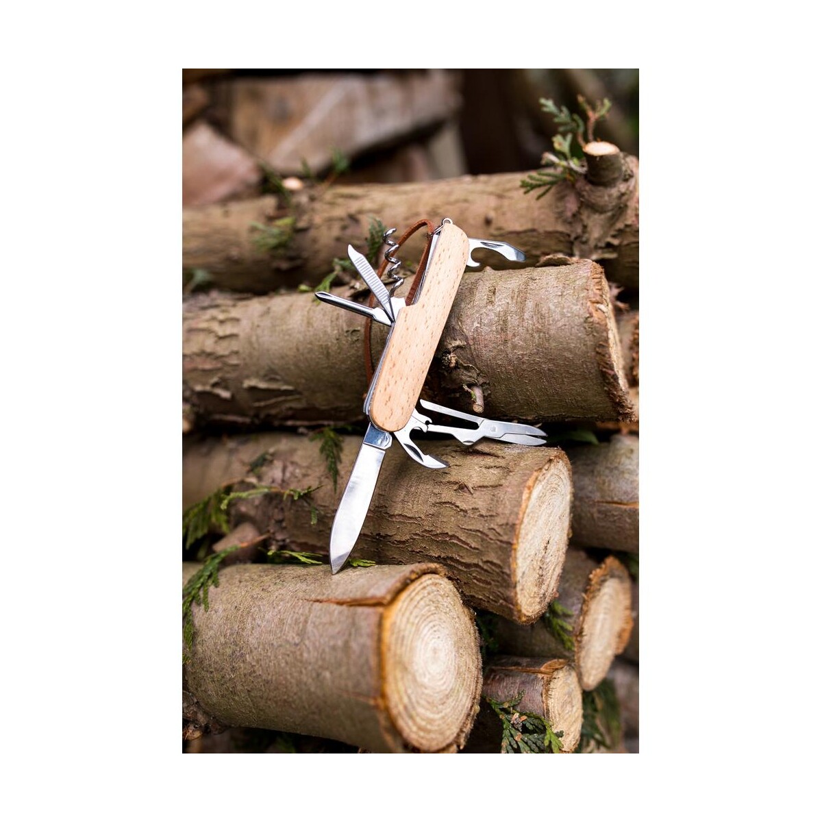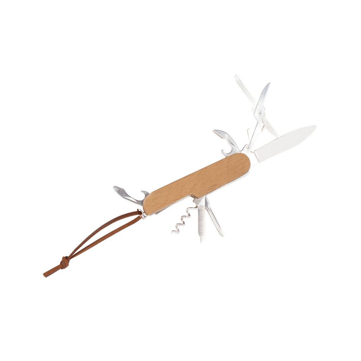 Wykonany z solidnego połączenia metalu i drewna bukowego, Narzędzie wielofunkcyjne, scyzoryk, 7 funkcji | Beatrice zapewnia aż 7 funkcji: nóż, nożyczki, otwieracz do butelek, korkociąg, pilniczek, wkrętak krzyżakowy oraz otwieracz do puszek. Tak bogate wyposażenie czyni go perfekcyjnym towarzyszem zarówno w biurze, jak i podczas wypraw na łono natury.