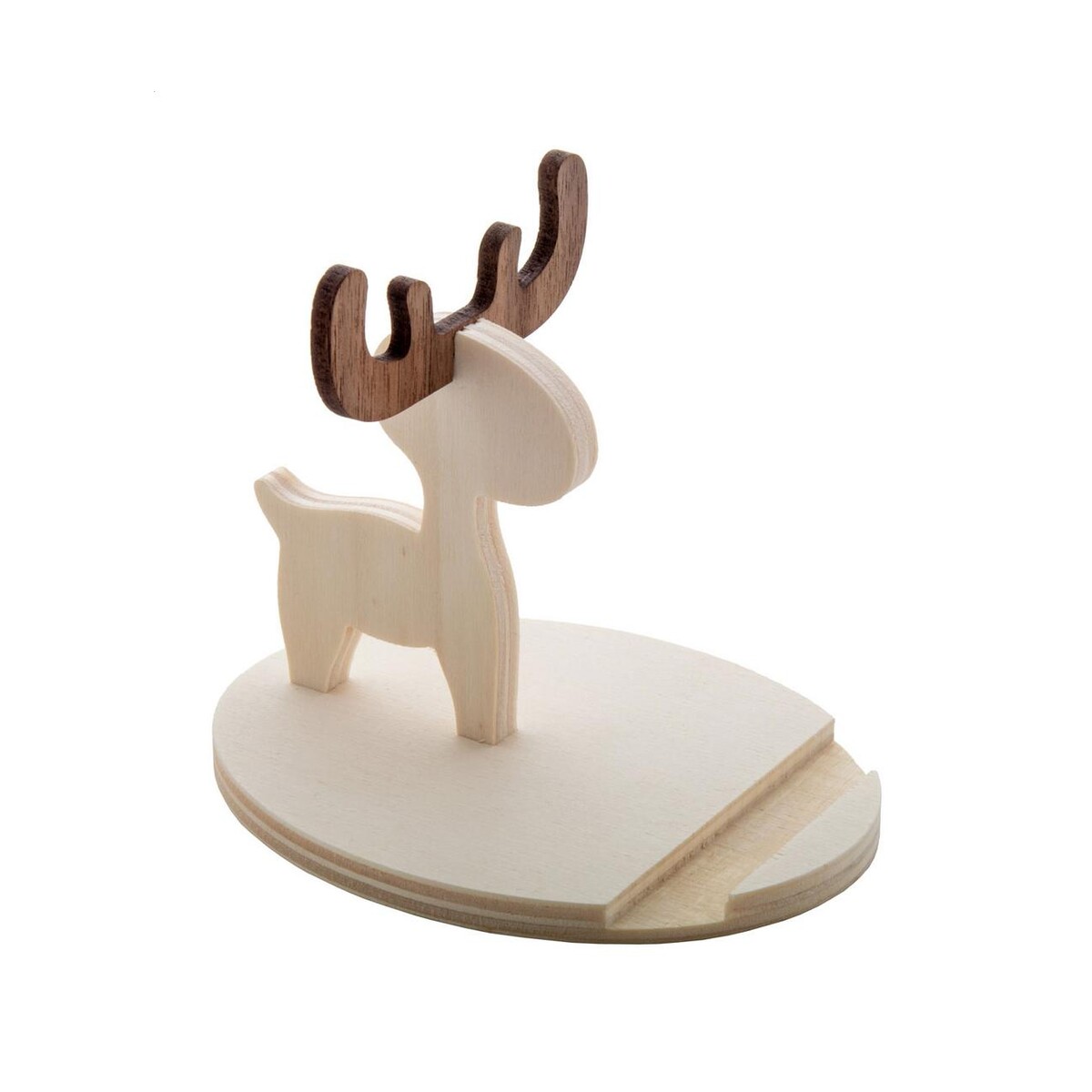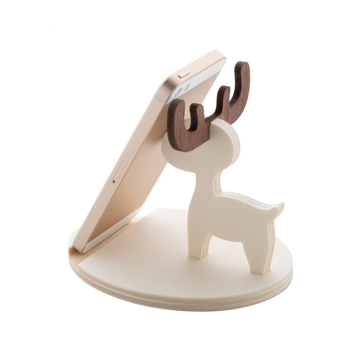 Minimalistyczna konstrukcja renifera gwarantuje stabilne podparcie smartfona w pionie i poziomie, co ułatwia korzystanie z nawigacji podczas jazdy, prowadzenie wideokonferencji czy oglądanie filmów bez użycia rąk. Naturalny kolor drewna wprowadza ciepły, skandynawski klimat, znakomicie komponujący się z wnętrzem nowoczesnego biura, ekologicznego stoiska targowego lub designerskiego salonu sprzedaży.