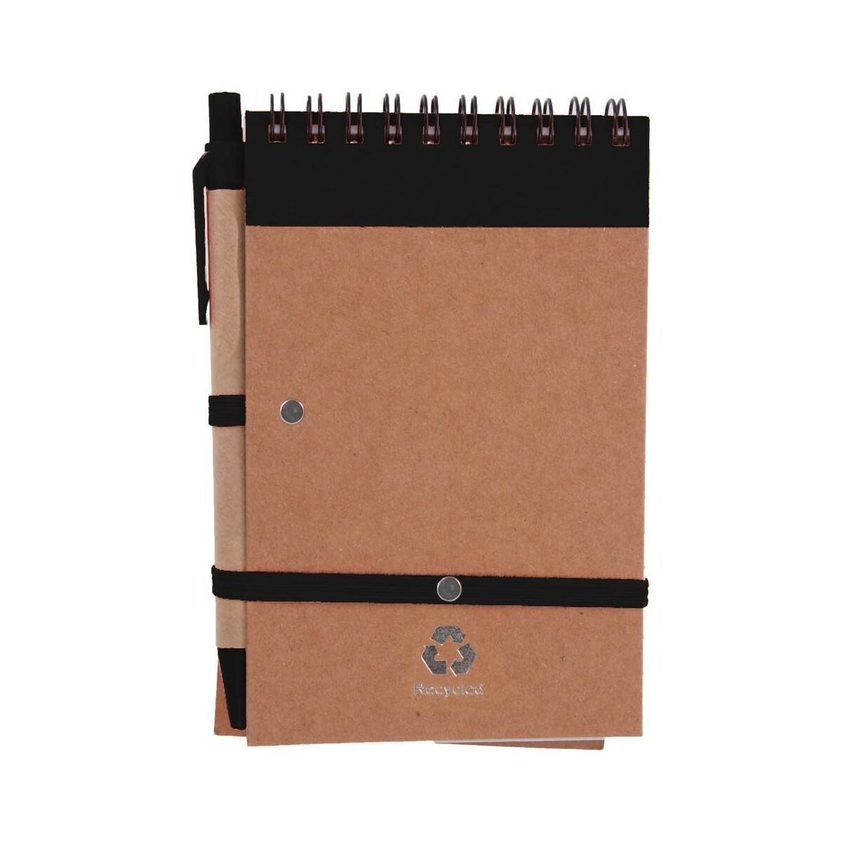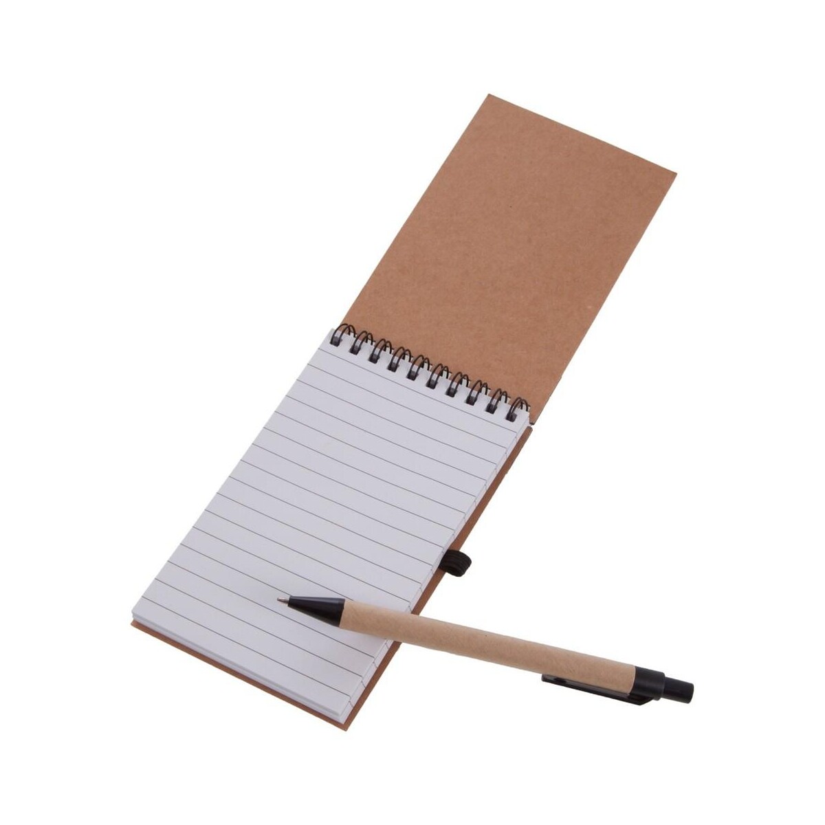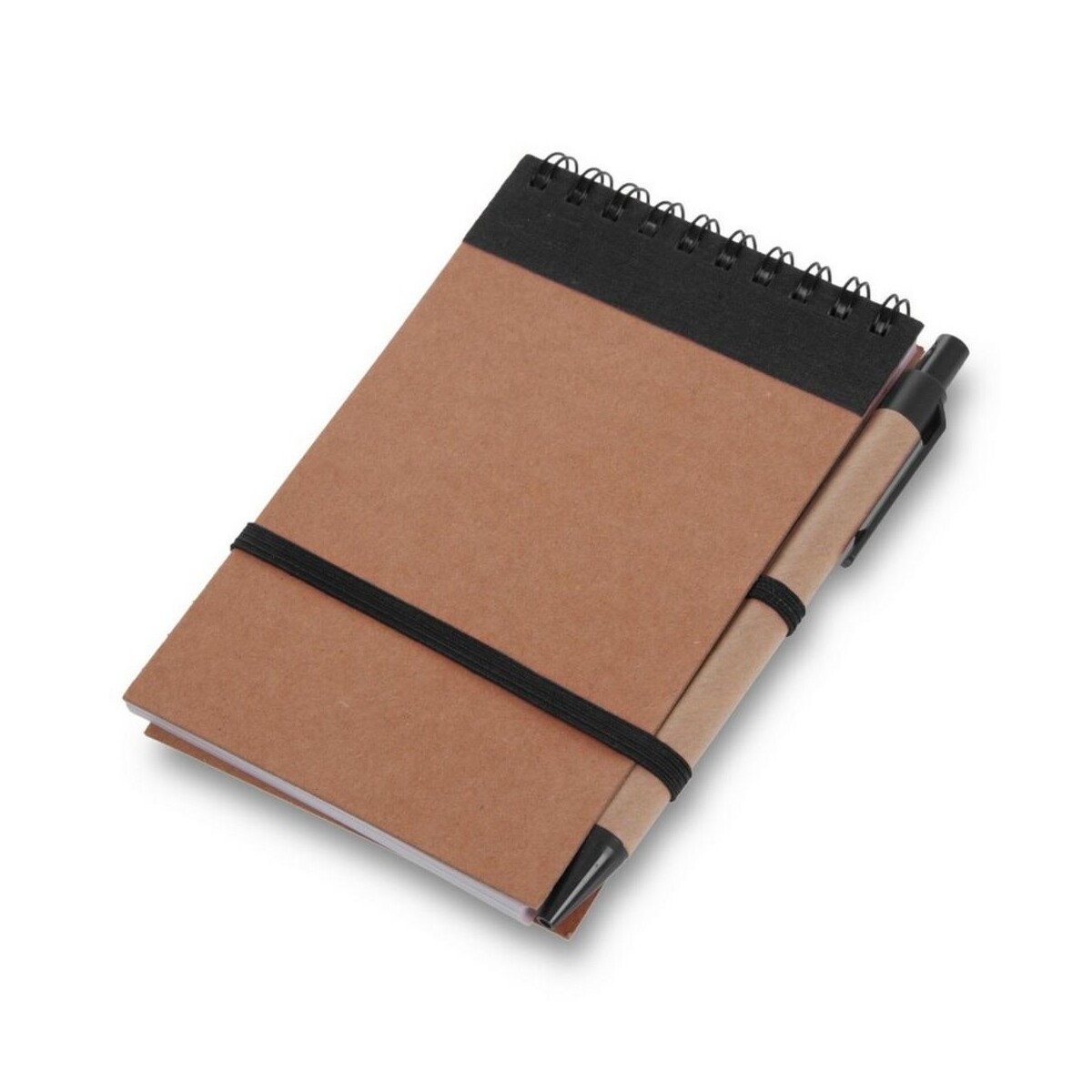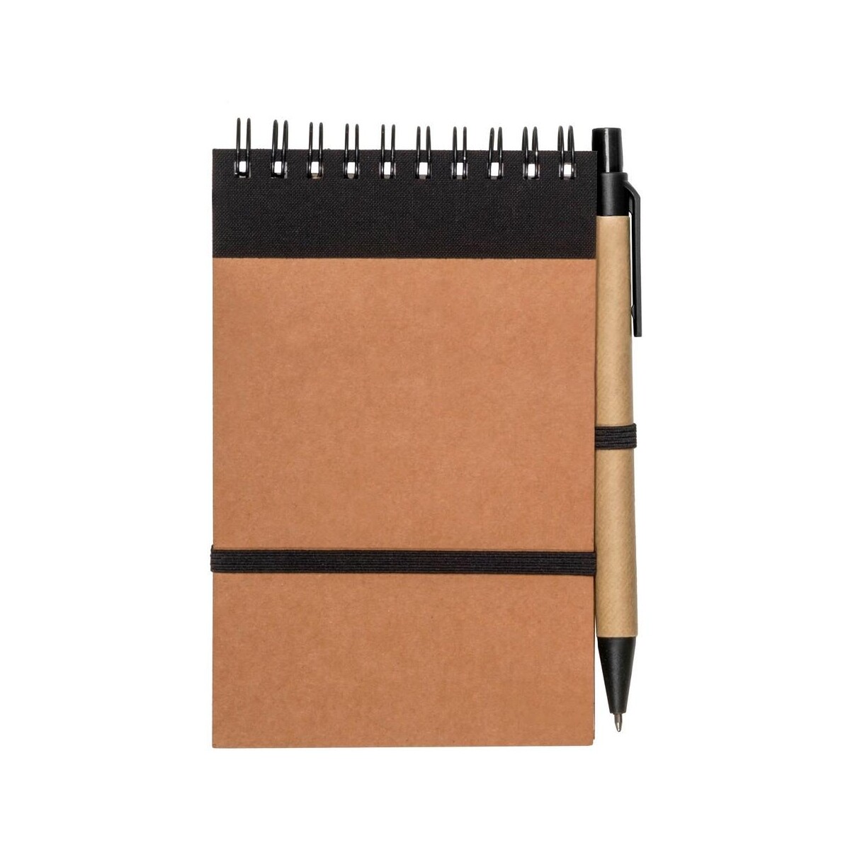 Notatnik ok. A6 z długopisem | Chapman to znakomity towarzysz codziennych zapisków, który zachwyci każdego miłośnika ekologicznych rozwiązań 🙂. Jego kompaktowy format ok. A6 (10 × 14,5 × 1,3 cm) oraz niewielka waga 82 g sprawiają, że bez trudu zmieści się w kieszeni marynarki, plecaku czy torbie na laptopa. Wykonany z przyjaznych środowisku materiałów – kartonu, papieru kraftowego, bawełny i elastycznej gumy – stanowi prawdziwie reklamowe wsparcie w budowaniu wizerunku marki odpowiedzialnej społecznie. 70 gładko obracających się kartek w linie (aż 140 stron) spaja spiralne bindowanie, a stylowa, kolorystycznie dopasowana opaska gwarantuje bezpieczne przechowywanie notatek nawet w ruchu.