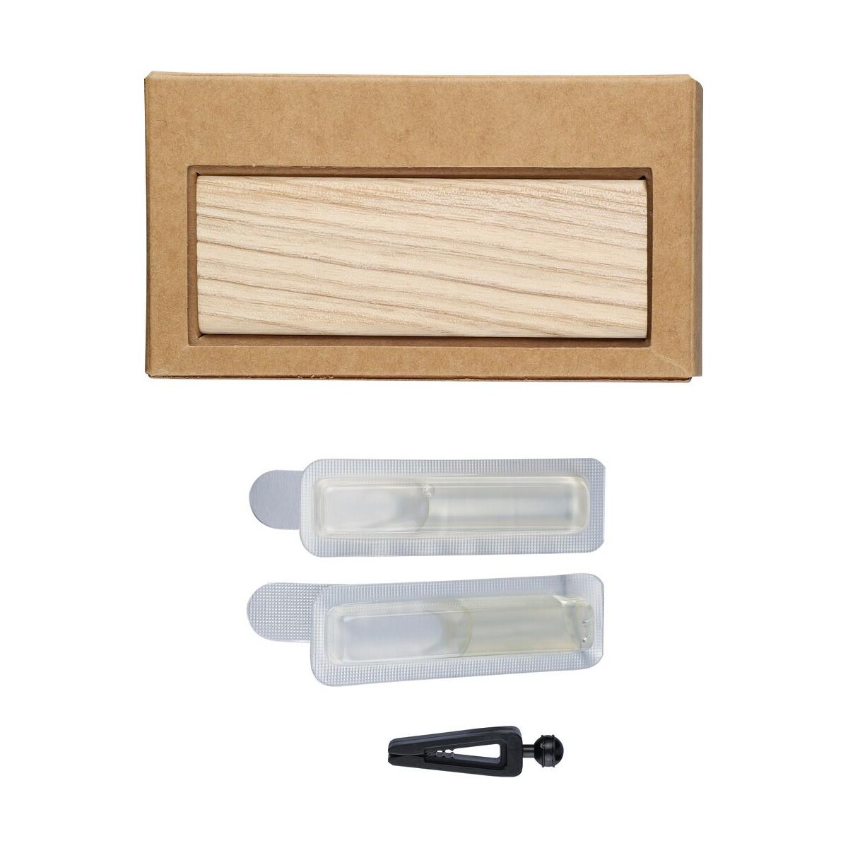 Odświeżacz do samochodu to znakomity, ekologiczny gadżet promocyjny, który przyciągnie uwagę każdego kierowcy 😊. Wykonany z naturalnego drewna bukowego, wyposażony w 2 pojemniczki po 3 g z zapachem drzewa sandałowego, nie tylko odświeża wnętrze auta, ale i podkreśla troskę o środowisko. Jego poręczne wymiary 11,5 × 6,5 × 3,3 cm oraz niewielka waga 52 g sprawiają, że bez trudu zmieści się w każdej kieszeni drzwi, a praktyczny klips pozwala stabilnie zamocować go na kratce nawiewu. Całość zapakowana jest w elegancki, brązowy kartonik, który tylko czeka na Twoje firmowe logo.
