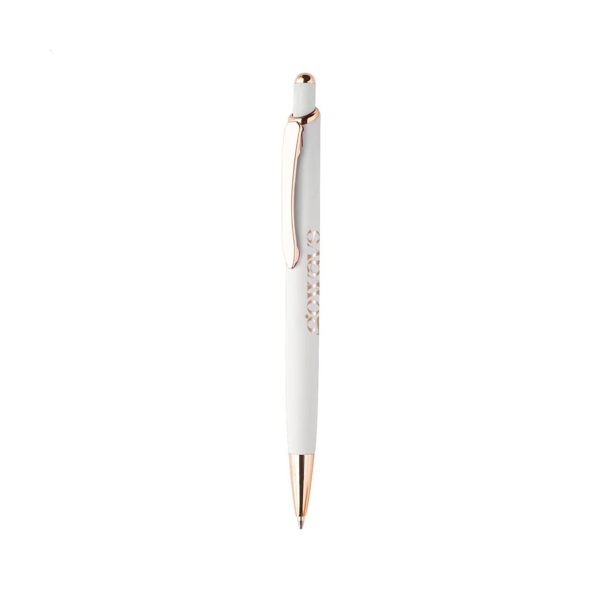 Orosa długopis doskonale sprawdzi się w promocji branży beauty, spa, modowej czy nowoczesnych firm technologicznych, gdzie detale w kolorze różowego złota podkreślą prestiż marki. To perfekcyjny gadżet do salonów fryzjerskich, luksusowych butików, ale i kancelarii prawnych czy biur nieruchomości, ponieważ subtelna elegancja produktu budzi zaufanie i zostaje w pamięci klientów. Dzięki szerokiej palecie barw — od jasnoróżowego, przez biały, niebieski, zielony, bordowy, szary, aż po klasyczną czerń — łatwo dopasujesz odcień do identyfikacji wizualnej dla Twojej firmy.
