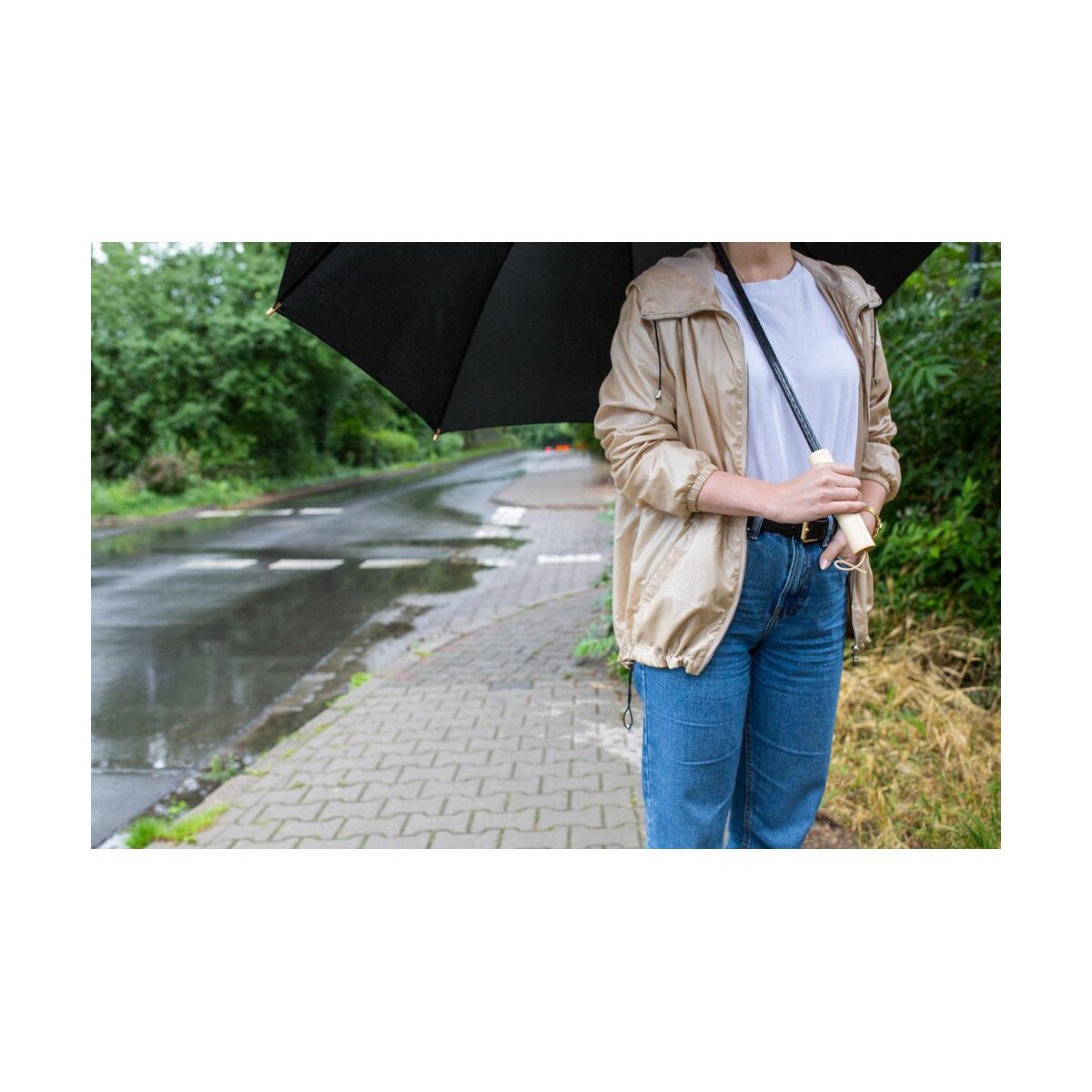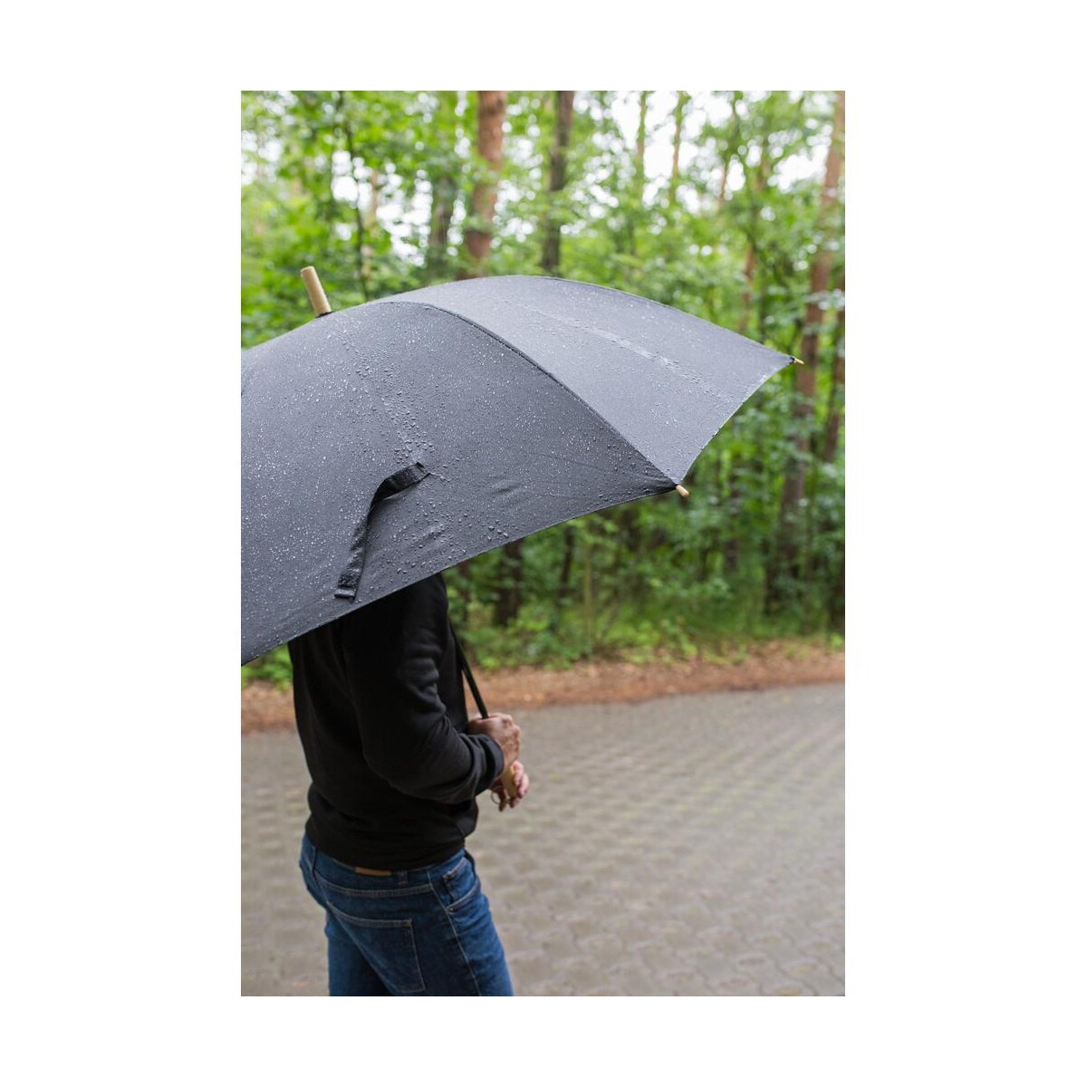 Jeśli poszukujesz upominku dla Twojej firmy, który będzie nie tylko praktyczny, lecz także przyjazny środowisku, ten model jest wręcz znakomity. Dzięki drewnianej, ergonomicznej rączce trzymanie parasola to czysta przyjemność, a manualny mechanizm rozkładania gwarantuje niezawodność nawet po wielu latach użytkowania. Dodaj własne logo, podkreśl proekologiczną misję i przenieś promocję na wyższy poziom – Parasol manualny RPET | Keelan jest gotowy, by stać się Twoją wizytówką w każdą pogodę! 🌿
