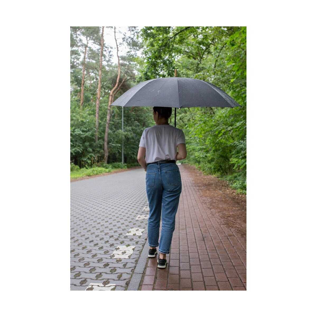 Czarny, elegancki kolor nadaje mu uniwersalny charakter, dzięki czemu Parasol manualny RPET | Keelan świetnie wpisze się zarówno w kampanie modowe, jak i w działania marek stawiających na zrównoważony rozwój. Duża, ośmiopanelowa czasza to perfekcyjna powierzchnia pod nadruk – tutaj umieścisz swoje logo, tworząc funkcjonalny gadżet promocyjny, który zostanie z odbiorcą na długie lata. Ekologiczne parasole to obecnie jeden z najchętniej wybieranych produktów reklamowych, a wersja wykonana z przetworzonych butelek PET podkreśli prośrodowiskowe wartości Twojej marki.