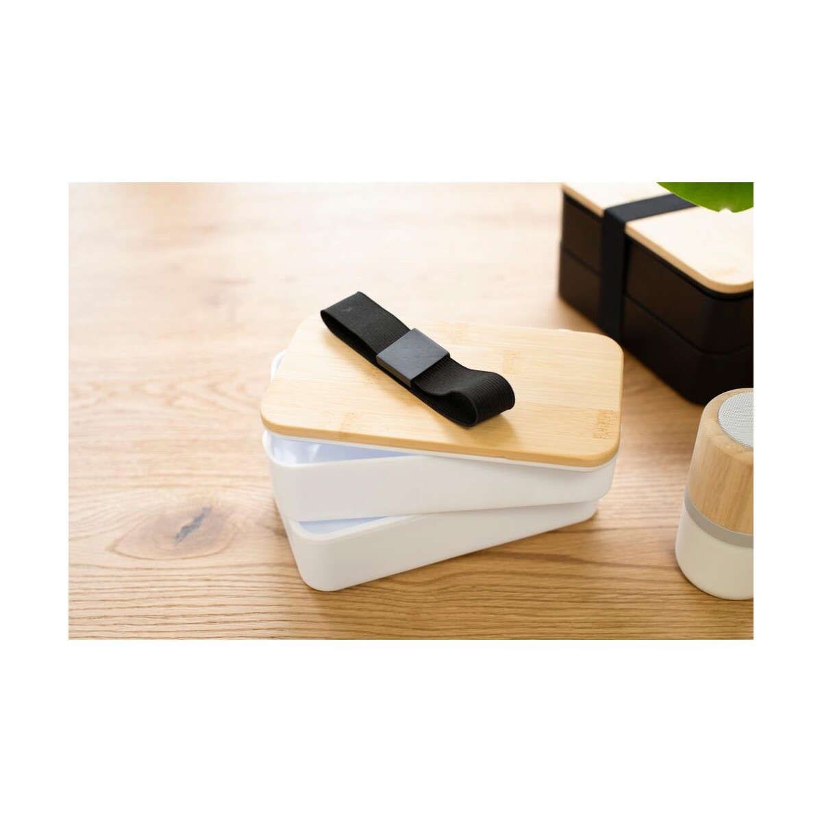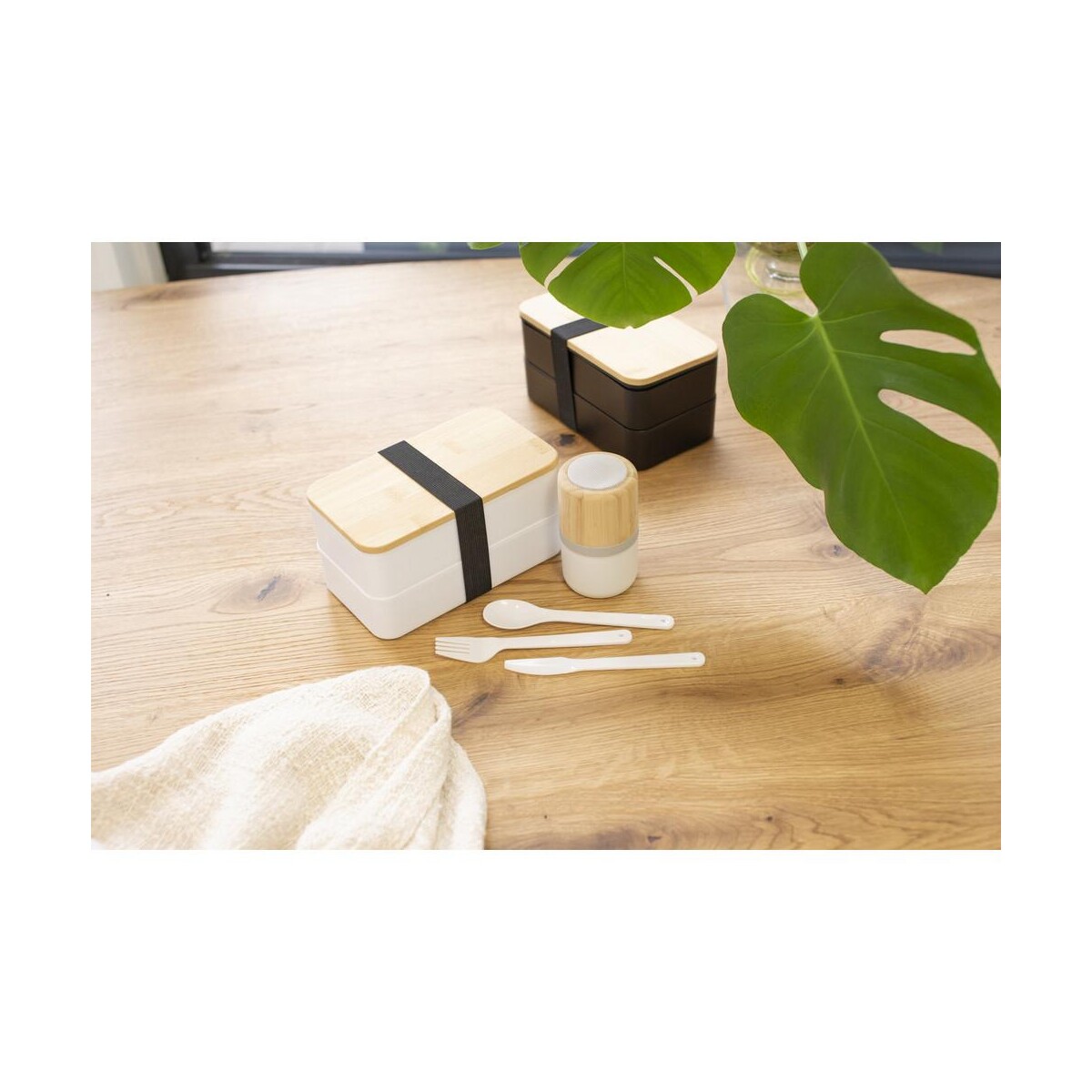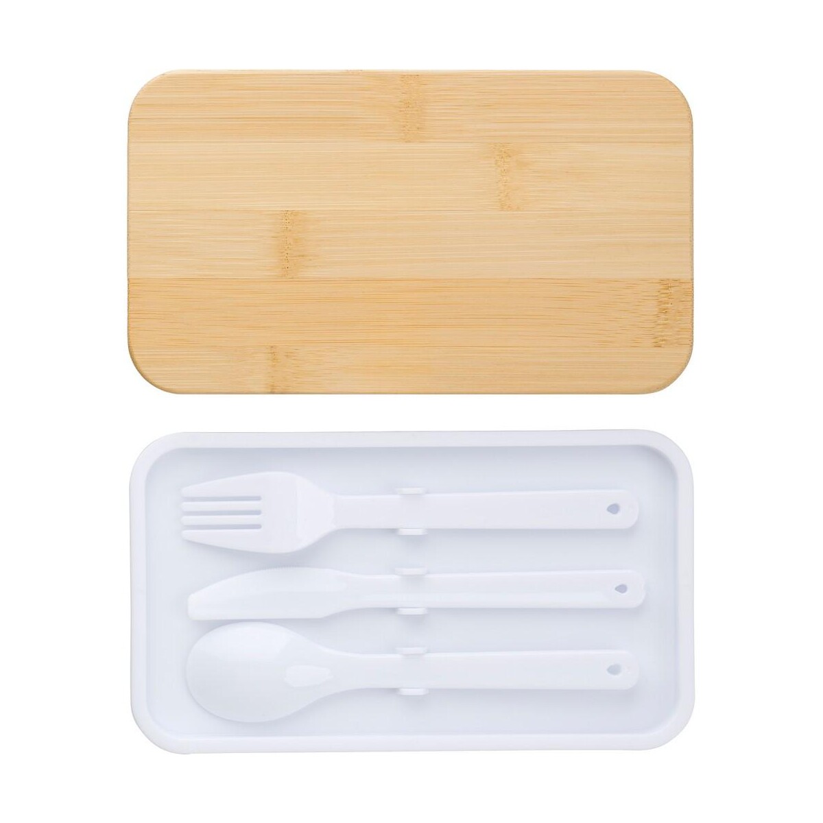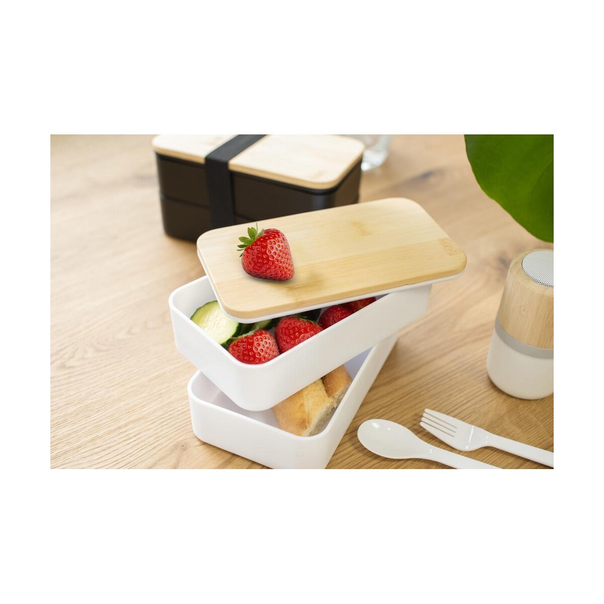 Pudełka śniadaniowe 2 w 1, 2×400 ml, bambusowe wieczko, sztućce