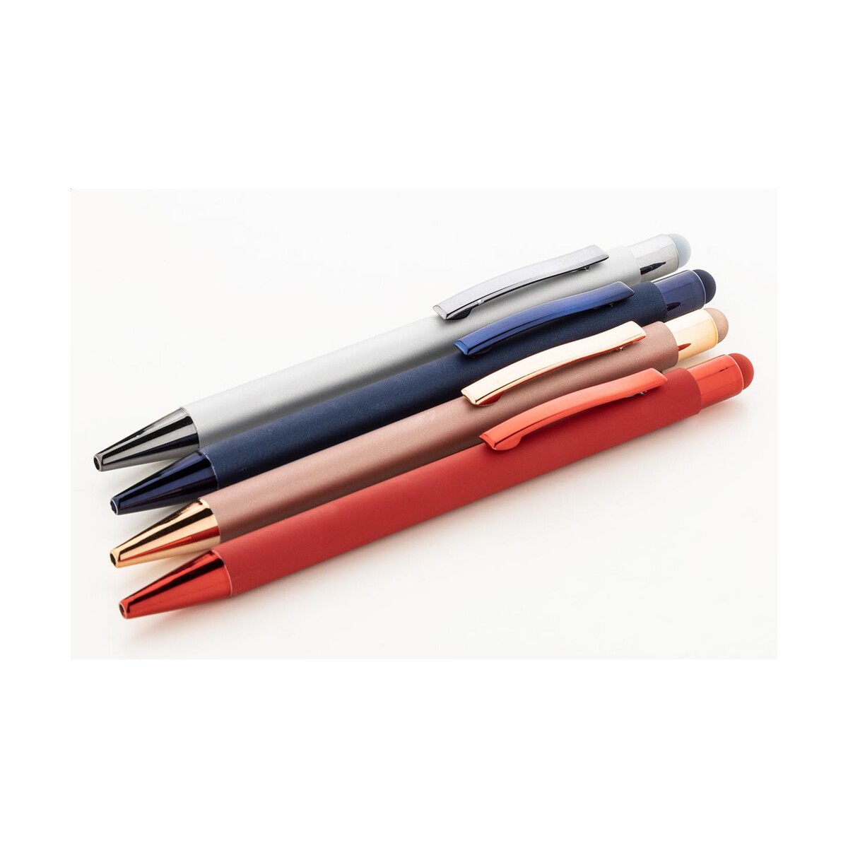Zintegrowana końcówka do ekranów dotykowych pozwala płynnie przełączać się między tradycyjnym notowaniem a obsługą smartfona lub tabletu, co czyni ten model perfekcyjnym wyborem dla branży IT, fintech czy nowoczesnych biur projektowych. Dzięki specjalnej powłoce pod grawerowanie lustrzane logo Twojego brandu zyska spektakularny połysk pasujący do metalowych detali. To doskonały sposób, aby stworzyć elegancki gadżet reklamowy, który będzie służyć latami.