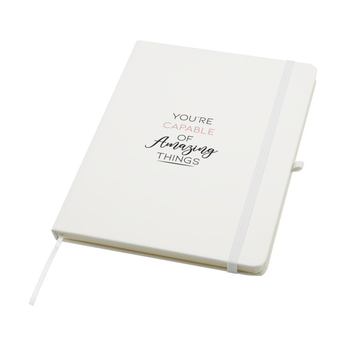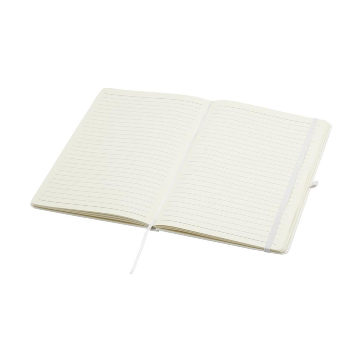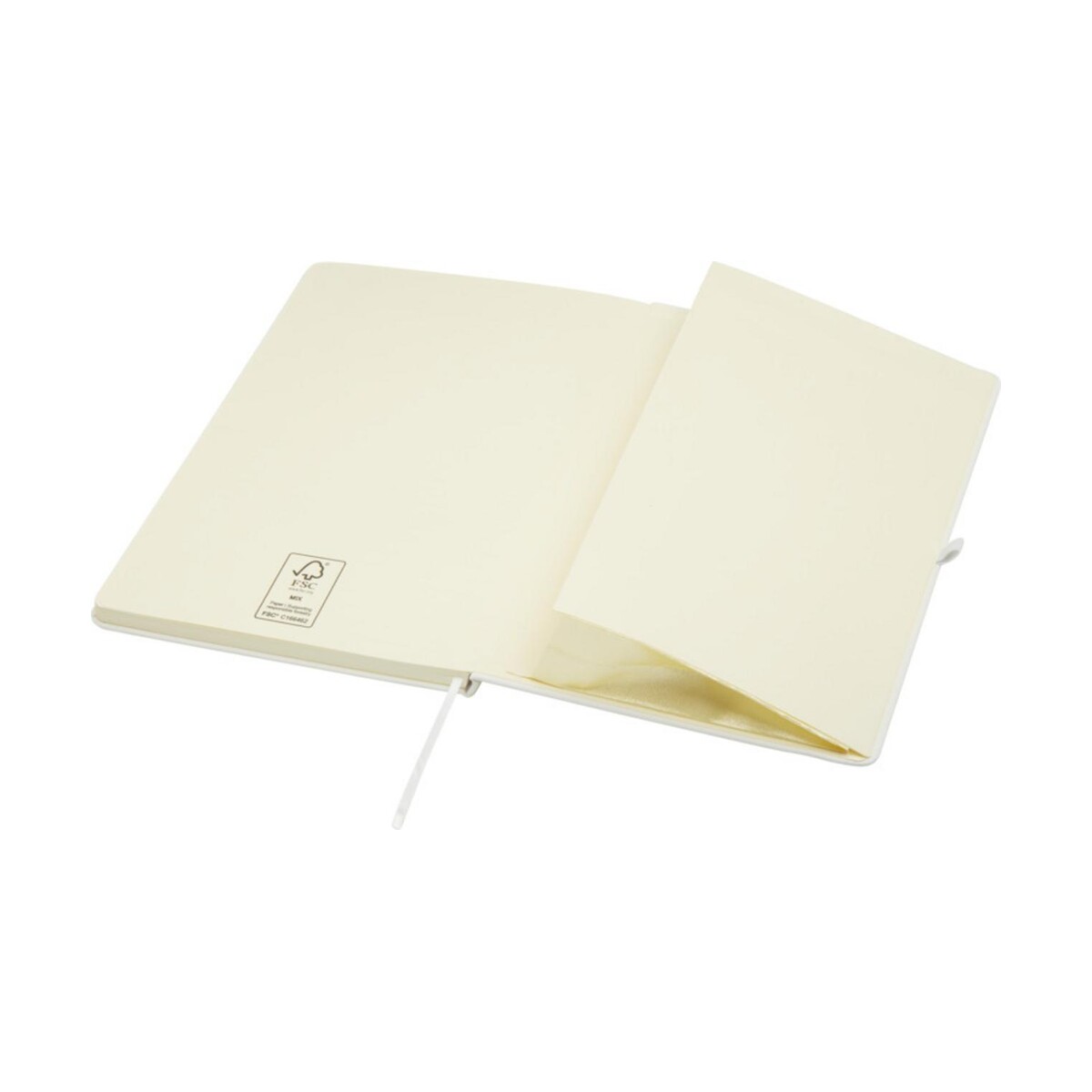 Spectrum Plus notatnik A5 w twardej okładce to wszechstronny, przyjazny środowisku gadżet, który zachwyci każdego, kto ceni porządek w notatkach i dbałość o wizerunek marki 🙂. Wykonany z papieru z certyfikatem FSC i wytrzymałego PU, waży zaledwie 267 g, więc zawsze możesz mieć go pod ręką. Format A5, 80 kremowych, liniowanych kartek 70 g/m² oraz twarda okładka z zaokrąglonymi rogami sprawiają, że jest niezawodny zarówno podczas spotkań biznesowych, jak i w podróży służbowej. Dopełnieniem są praktyczne elementy: szlufka na długopis, elastyczne zamknięcie, wstążkowa zakładka oraz harmonijkowa kieszonka na luźne notatki czy wizytówki.