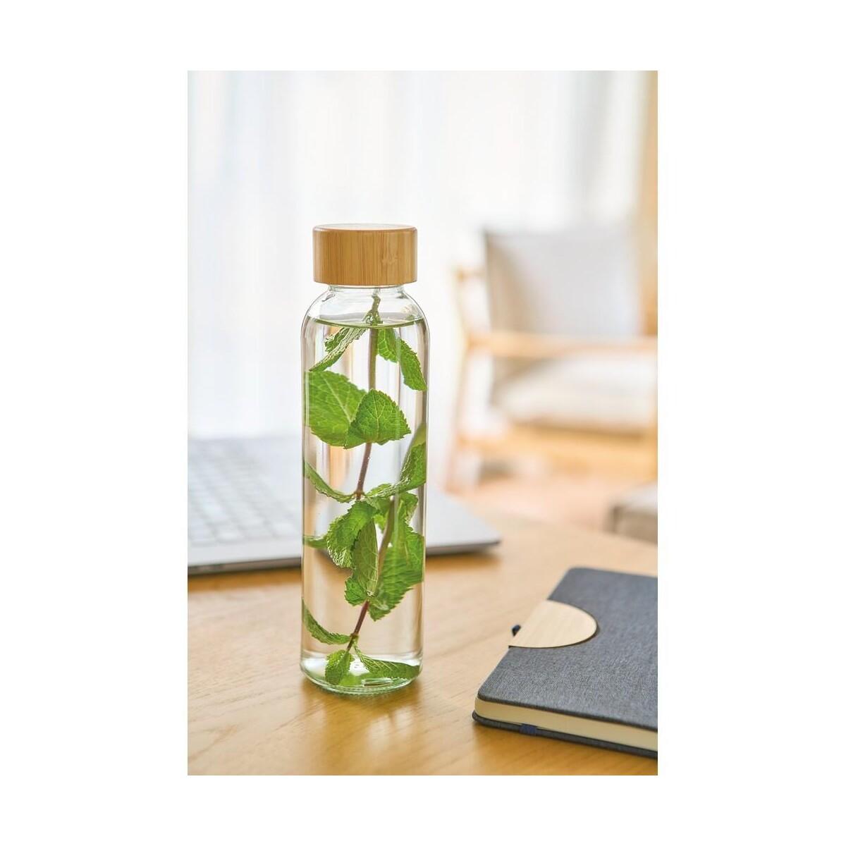 Szklana butelka 500 ml z bambusową nakrętką to perfekcyjny wybór, gdy szukasz ekologicznego rozwiązania na co dzień i funkcjonalnego nośnika przekazu reklamowego 😊. Jej matowe wykończenie oraz naturalne akcenty przyciągają uwagę odbiorców, tworząc wyjątkowy efekt premium. Wymiary ø6,3 x 23 cm i waga 245 g czynią ją poręczną, a jednocześnie solidną. Dzięki pięciu wersjom kolorystycznym – naturalnej, czarnej, czerwonej, granatowej i zielonej – łatwo dopasujesz produkt do identyfikacji wizualnej marki, a subtelny bambus podkreśli proekologiczny charakter kampanii.