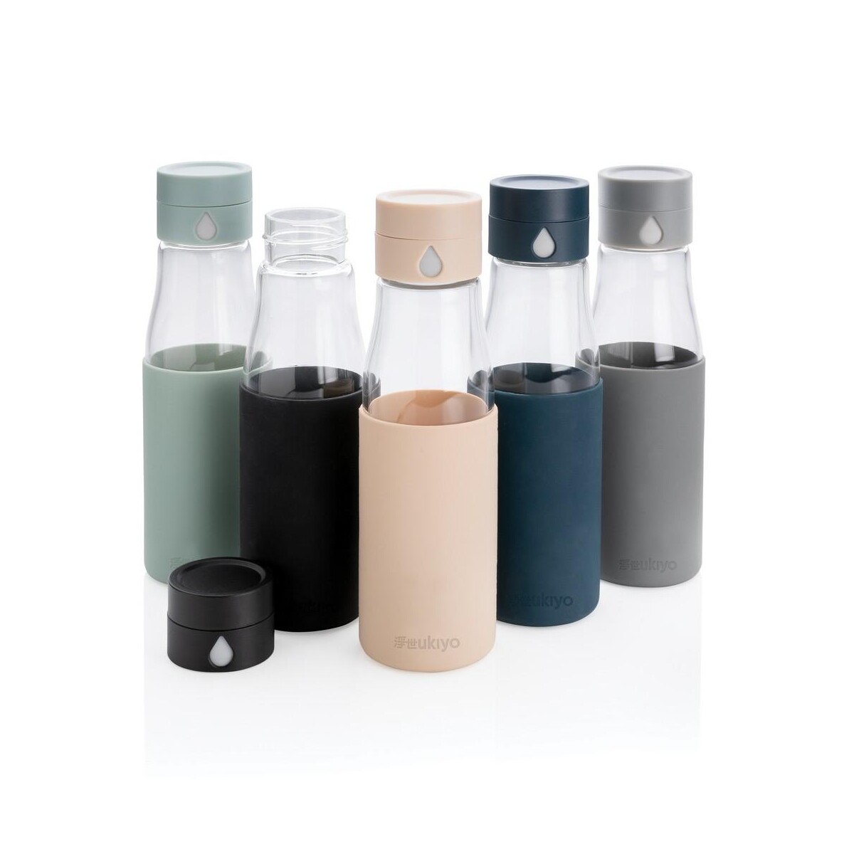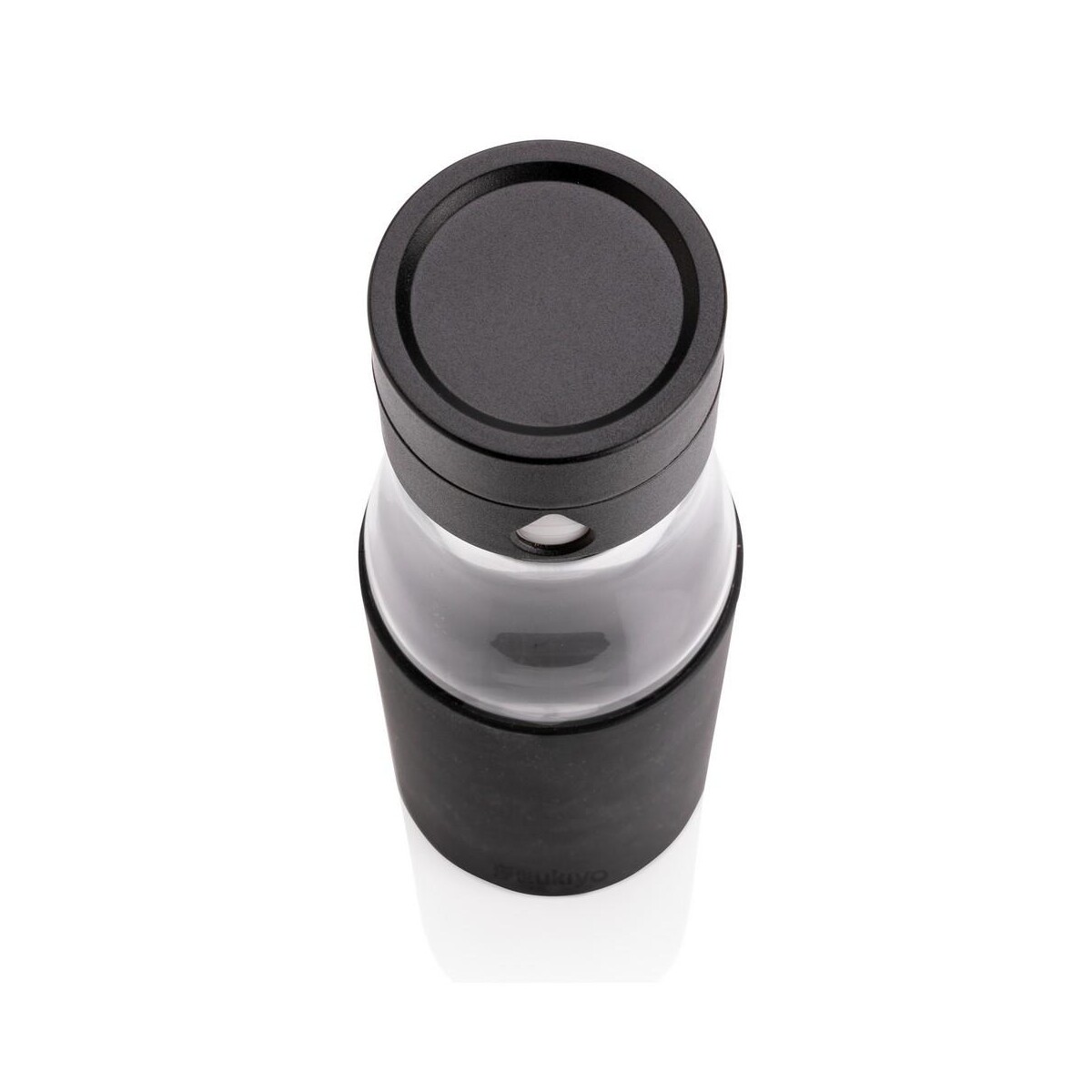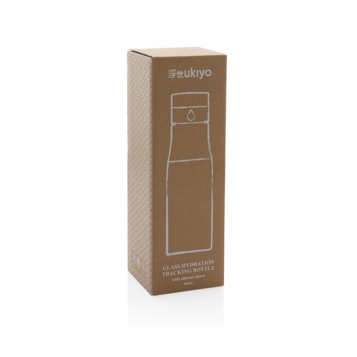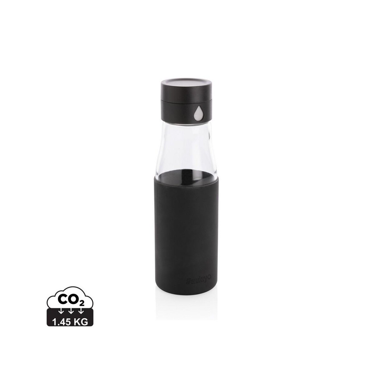 Szklana butelka 650 ml Ukiyo, monitorująca ilość wypitej wody ma pojemność 650 ml, jest w pełni szczelna, a jej korpus można myć w zmywarce, choć zakrętkę zaleca się myć ręcznie. Wymiary 7 x 5,5 x 23,5 cm sprawiają, że butelka mieści się w większości uchwytów samochodowych i kieszeni plecaków. Silikonowa opaska dostępna w kolorach niebieskim, czarnym lub szarym zapobiega wyślizgnięciu się z dłoni. Niski ślad węglowy 1,45 kg CO2 oraz wzór zastrzeżony® podkreślają jej proekologiczny i ekskluzywny charakter.