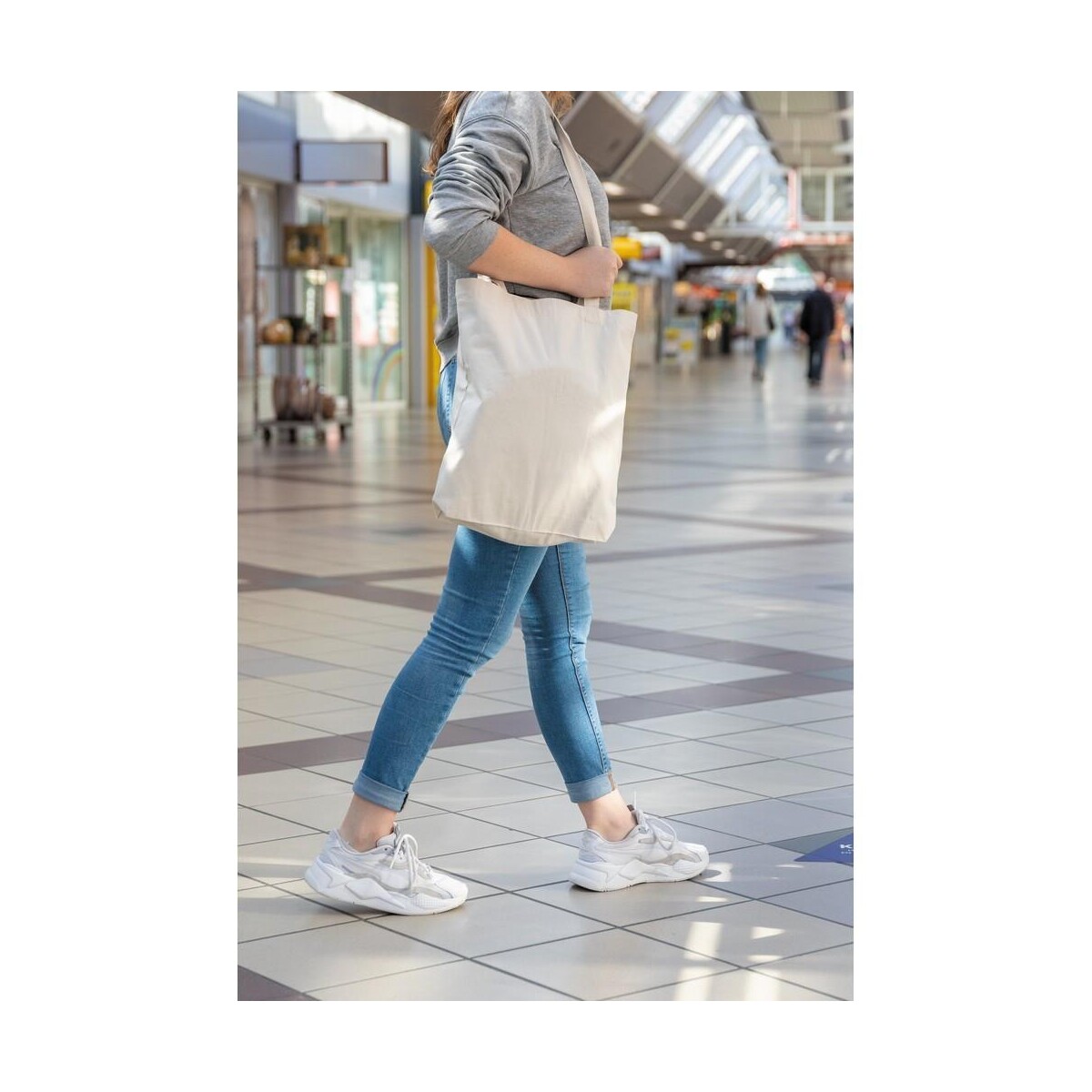 Uniwersalne wymiary 38 × 2 × 42 cm sprawiają, że Torba z bawełny z recyklingu Impact AWARE™ pomieści laptop, dokumenty czy zakupy spożywcze, a długie, mocne uchwyty zapewniają komfort noszenia na ramieniu. Dostępność w kolorach: niebieskim, białym oraz klasycznym czarnym, pozwala perfekcyjnie dopasować barwę tła pod firmowy nadruk.