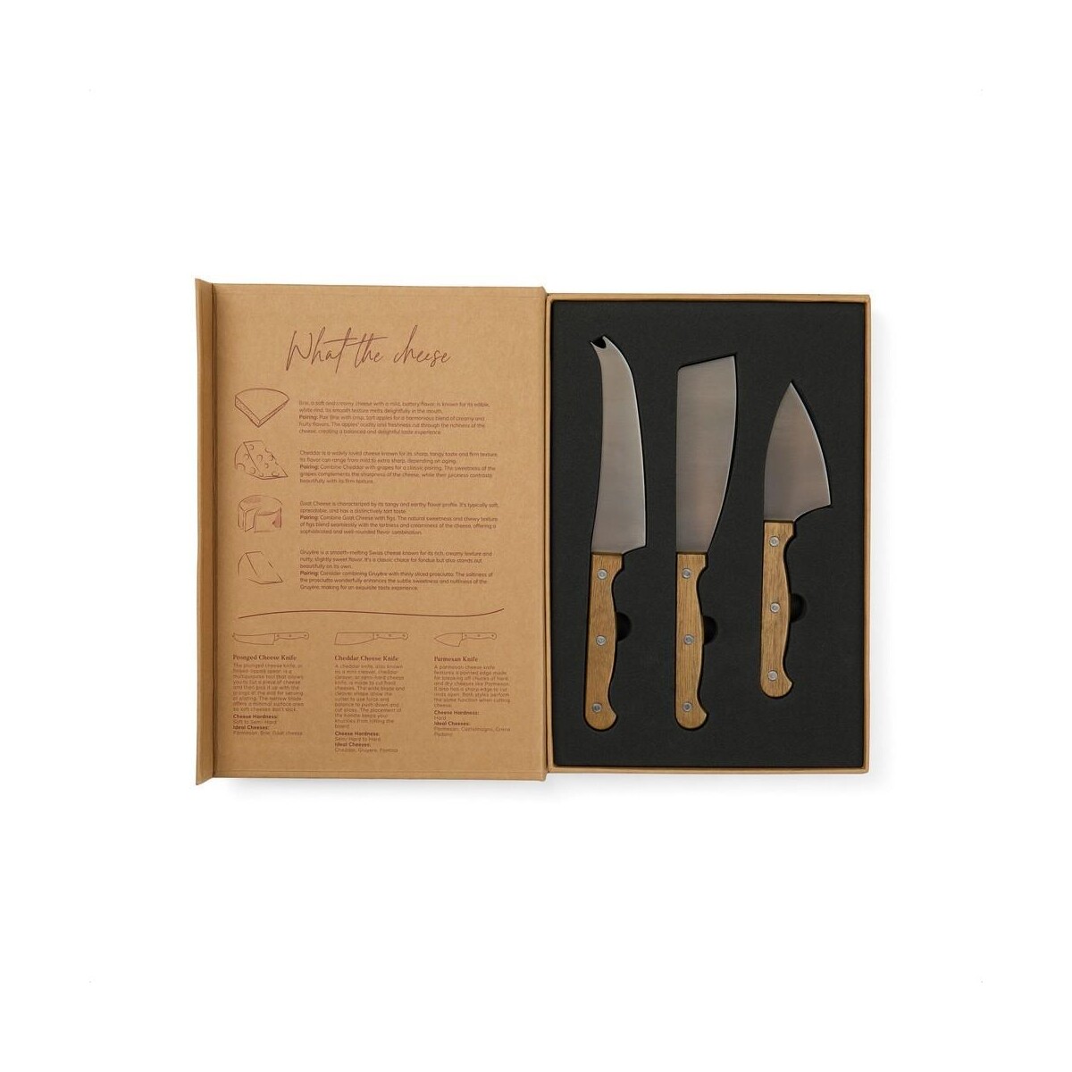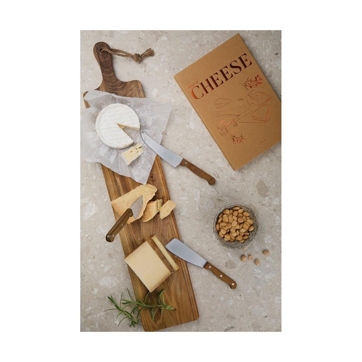 Zestaw do sera VINGA Story of Cheese to znakomity wybór dla koneserów serów, którzy cenią autentyczne doznania kulinarne i troskę o środowisko 😊. W eleganckim pudełku przypominającym książkę z historią sera — wykonanym z papieru z certyfikatem FSC® — kryją się trzy wyspecjalizowane noże: ząbkowany, do cheddara oraz do parmezanu. Kute ze stali nierdzewnej ostrza oraz uchwyty z naturalnego drewna akacjowego tworzą harmonijną całość, która będzie nie tylko ozdobą każdego stołu, lecz także trwałym narzędziem pracy. Ergonomiczne wymiary 28,5 × 19,2 × 2,7 cm sprawiają, że zestaw mieści się w większości szuflad i koszy piknikowych, a jednocześnie prezentuje się bardzo solidnie.
